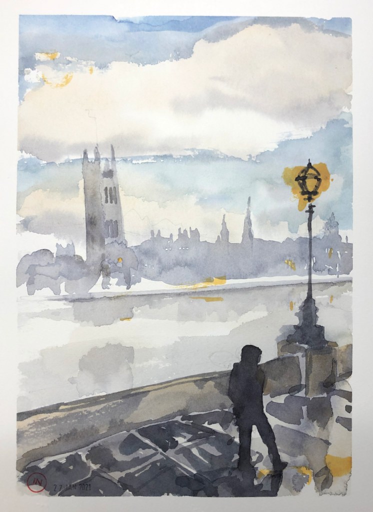 South Bank (1), from photo reference. 2nd Jan 2021. 12″ x10″ sheet.