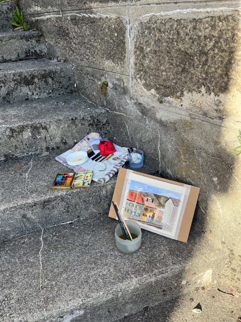 In the afternoon I sat down on the stone steps and sketched the houses that were in front of me.