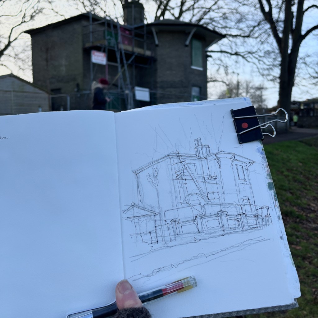 Sketching the Jesus Green Lock Housesketching by Jesus lockdetail from the sketch