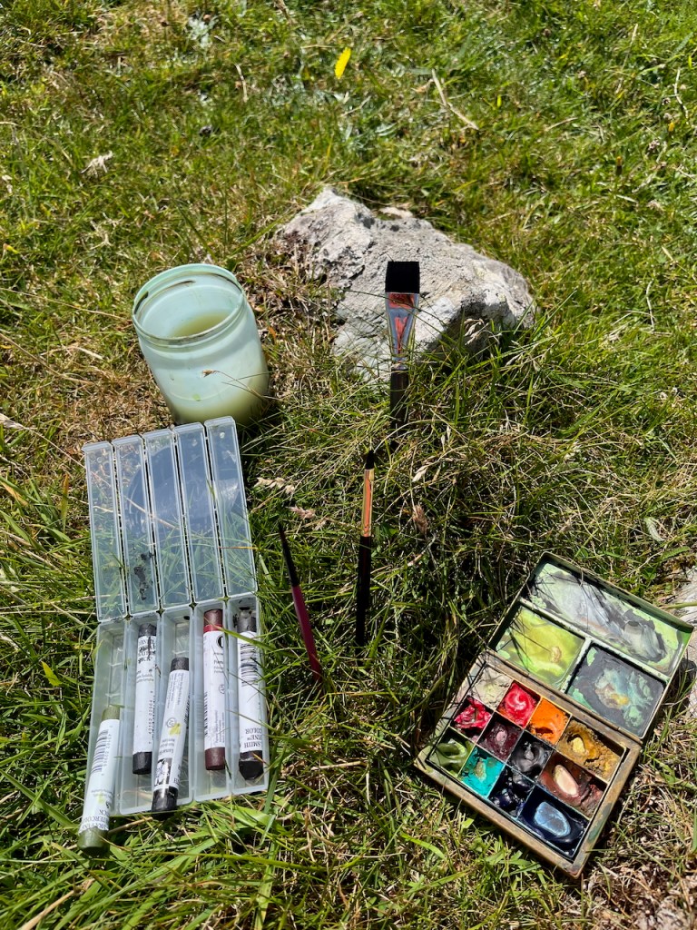 Rain on the watercoloursRain on the page: the Arches paper holds up well and doesn’t crinkleInteresting colour effects due to a fine rain showerSketchbook 14, page spreadSketchbook 14, page spread