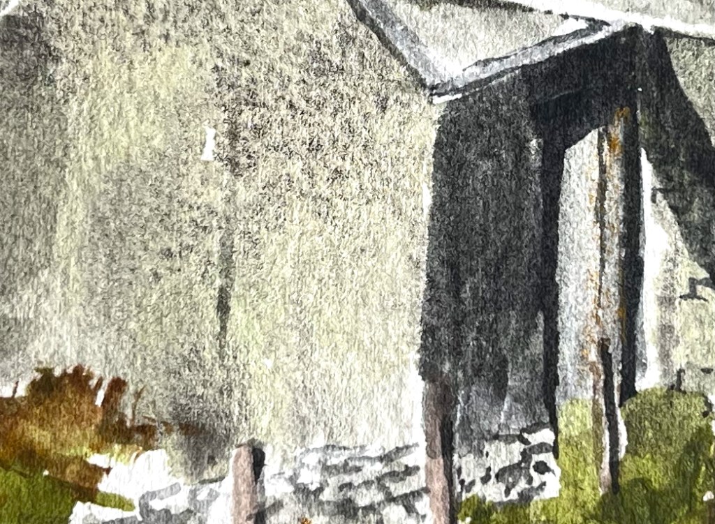 Looking up towards the hill where I was sketchingPatchwork barnThe variety of colours in the walls