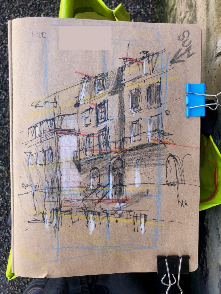 Yesterday I drew Basterfield House, sitting on some steps in the shadow of Great Arthur House.
