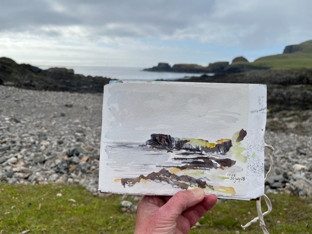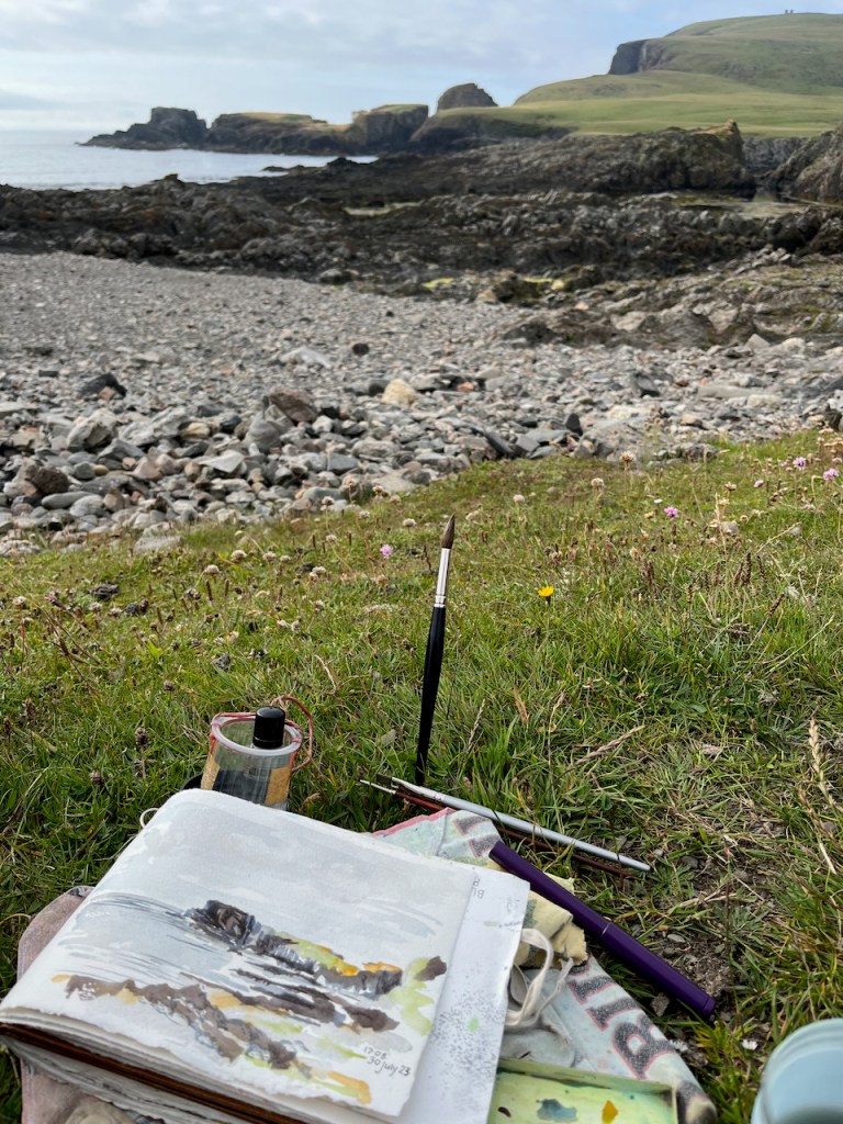 The beach at Sandray was a great sketching location. Here is a photo of my sketching spot.