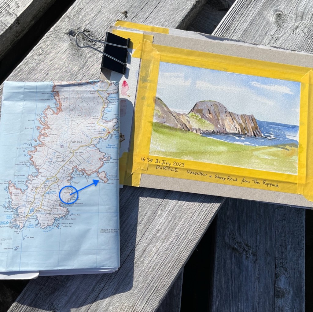 The postmaster at the Fair Isle Post Office kindly put their special postmark on my sketch for me.