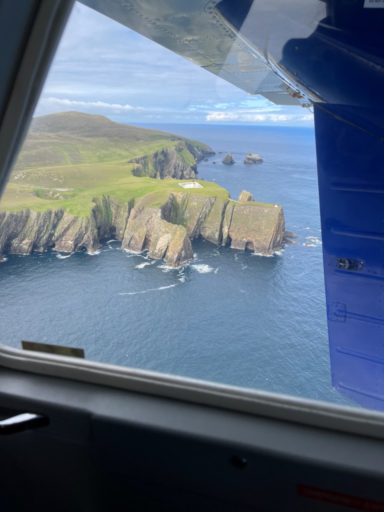 I was only on Fair Isle for three days. It’s an extraordinary place. Here was my final view of the island as I left on the tiny plane. The small square is the North Lighthouse, high up on its cliff.