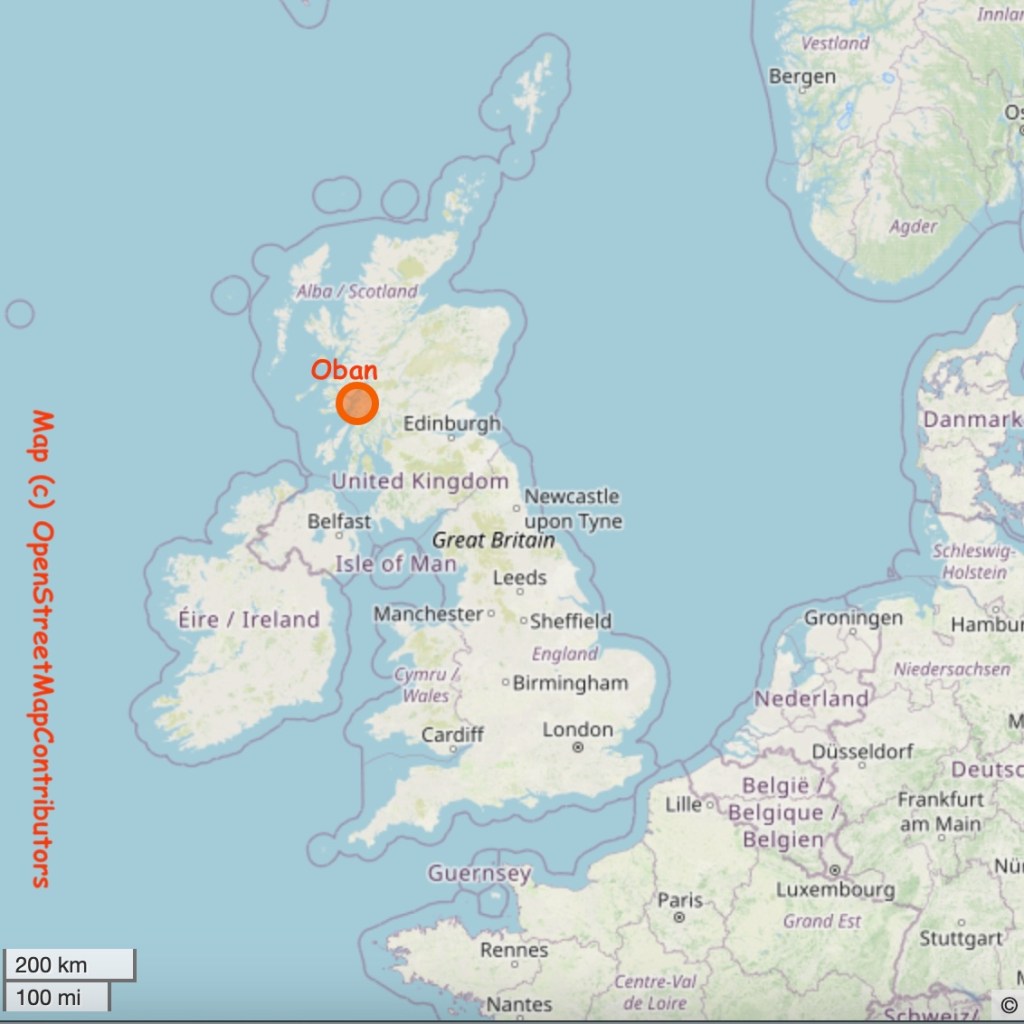 Oban is on the West Coast of ScotlanLady of Avenel was at Dunstaffnage Marina