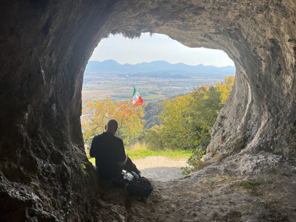 Cave of Saint Donati, above Villaga, Vicenza (iphone photo), Euganian hills on the horizon.