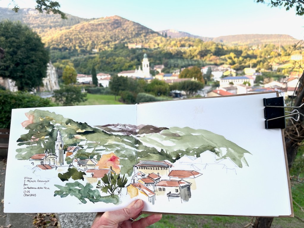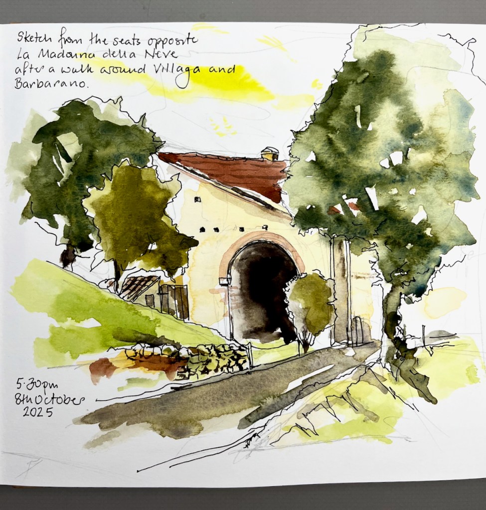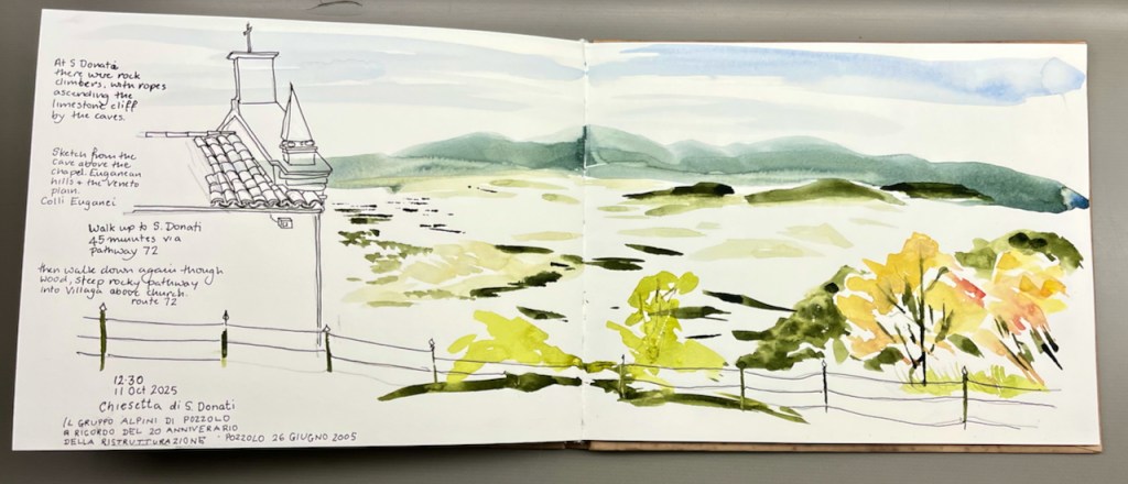 Here’s a sketch of the view from the cave of Saint Donati. The chapel of Saint Donati is on the left.