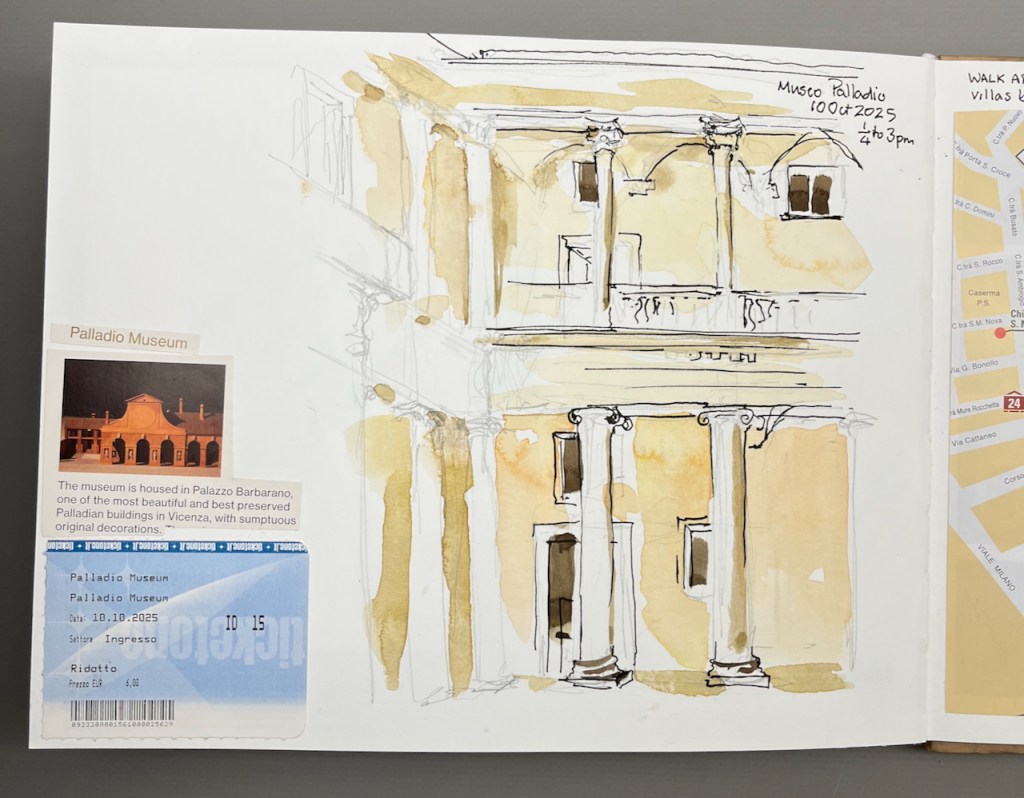 We drove to Vicenza along the magnificently named “La Strada del Vino dei Colli Berici”, the Road of the Vines of the Berici Hills. Italian is a marvellous language. Even the road names sound like poetry.