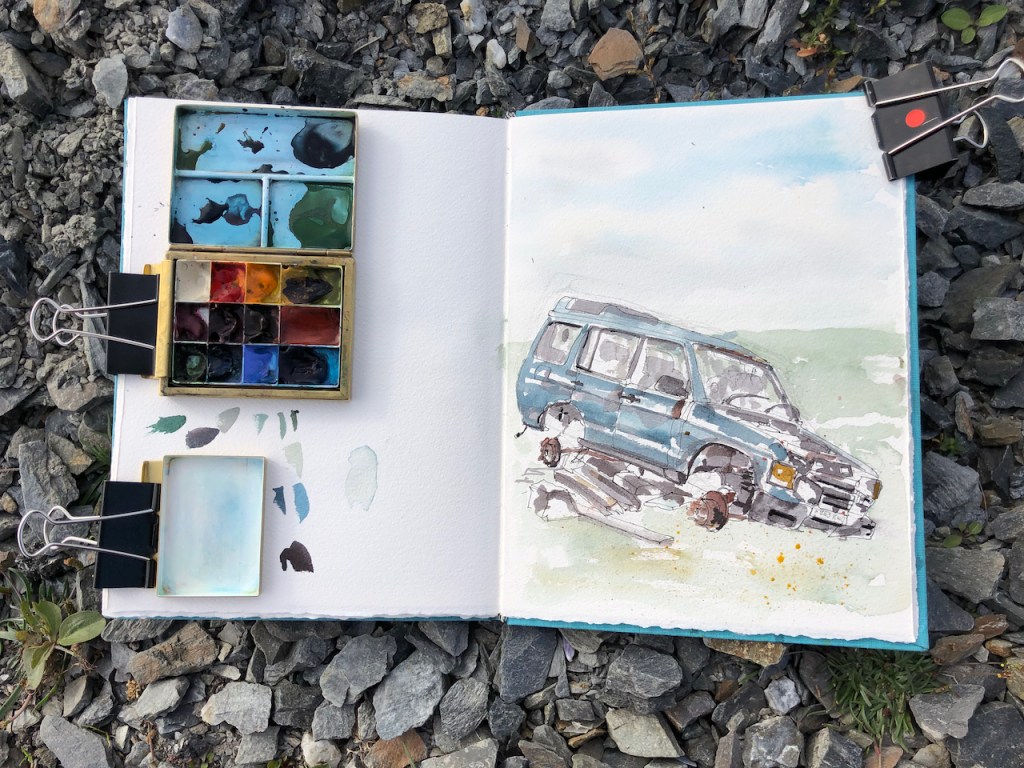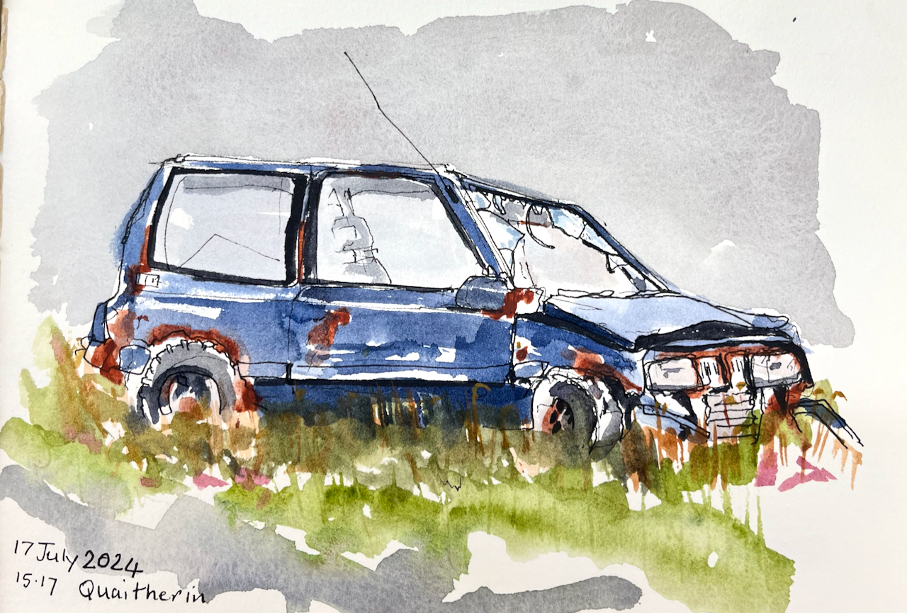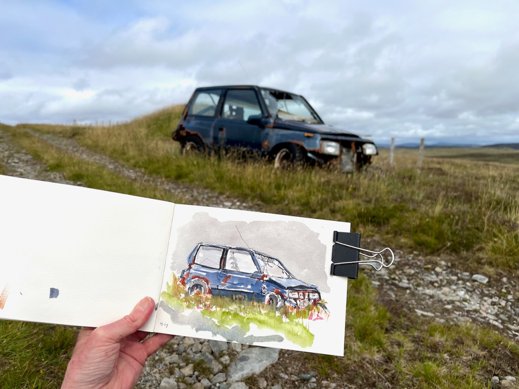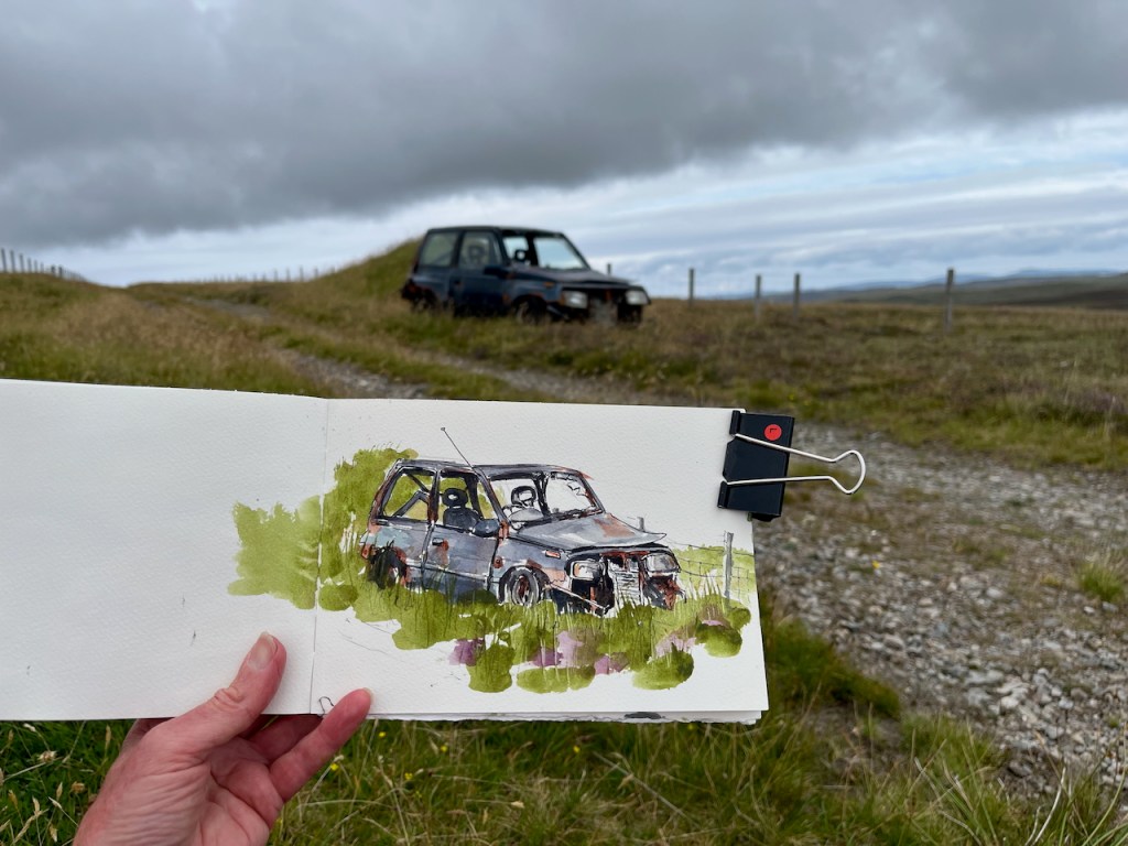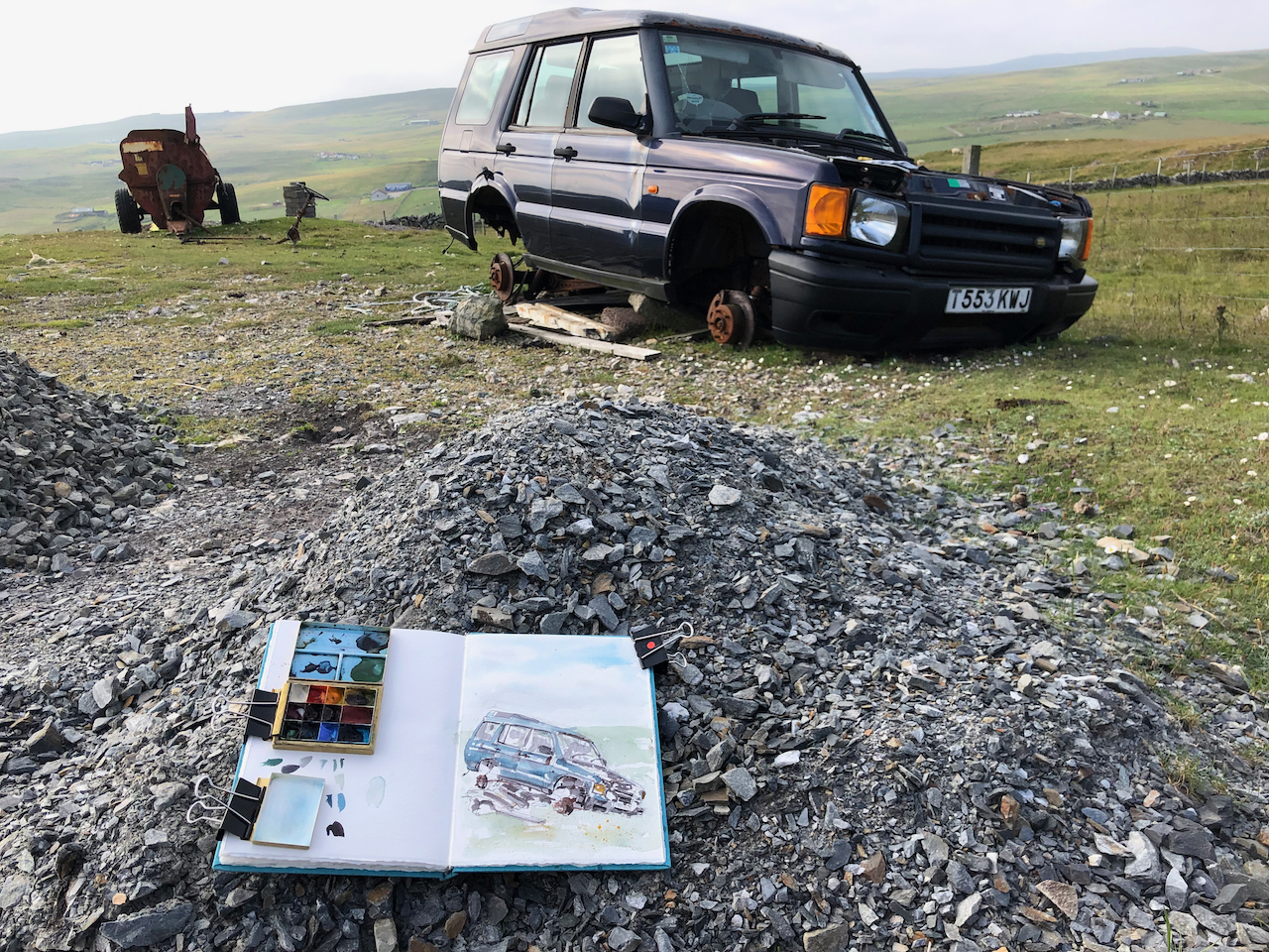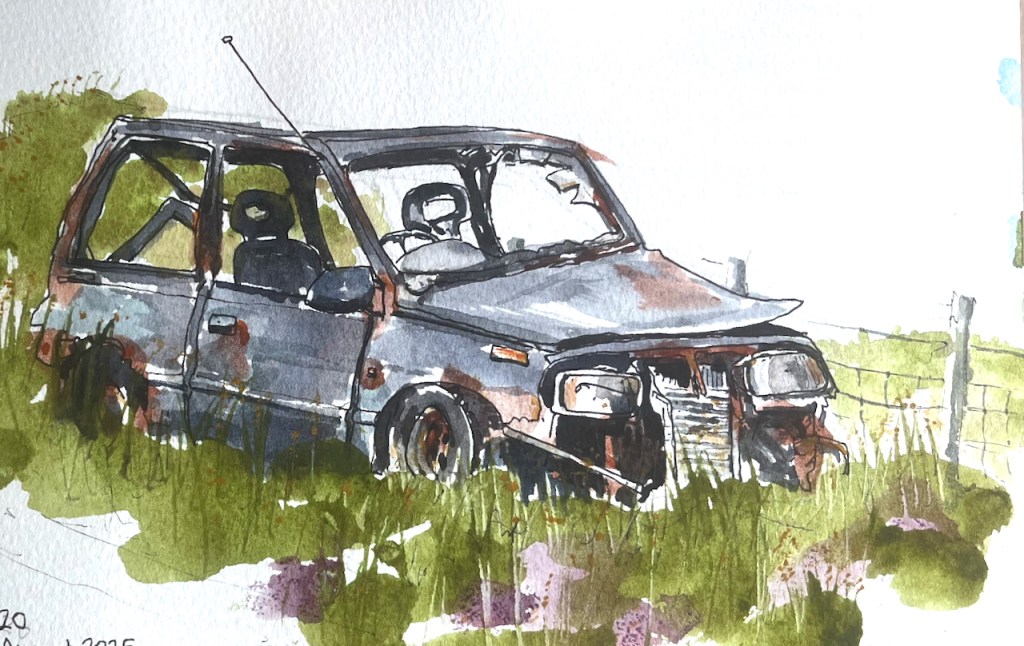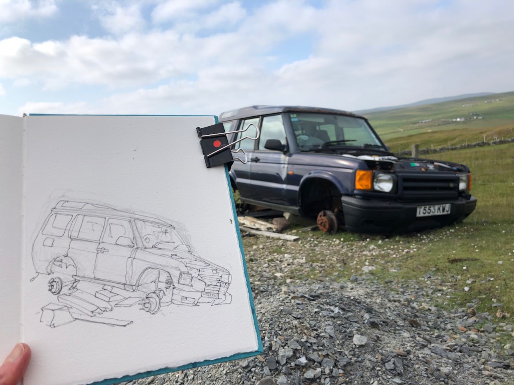 Here are previous drawings of abandoned vehicles in Shetland, including a previous drawing of Escudo. Click the picture to go to the description.