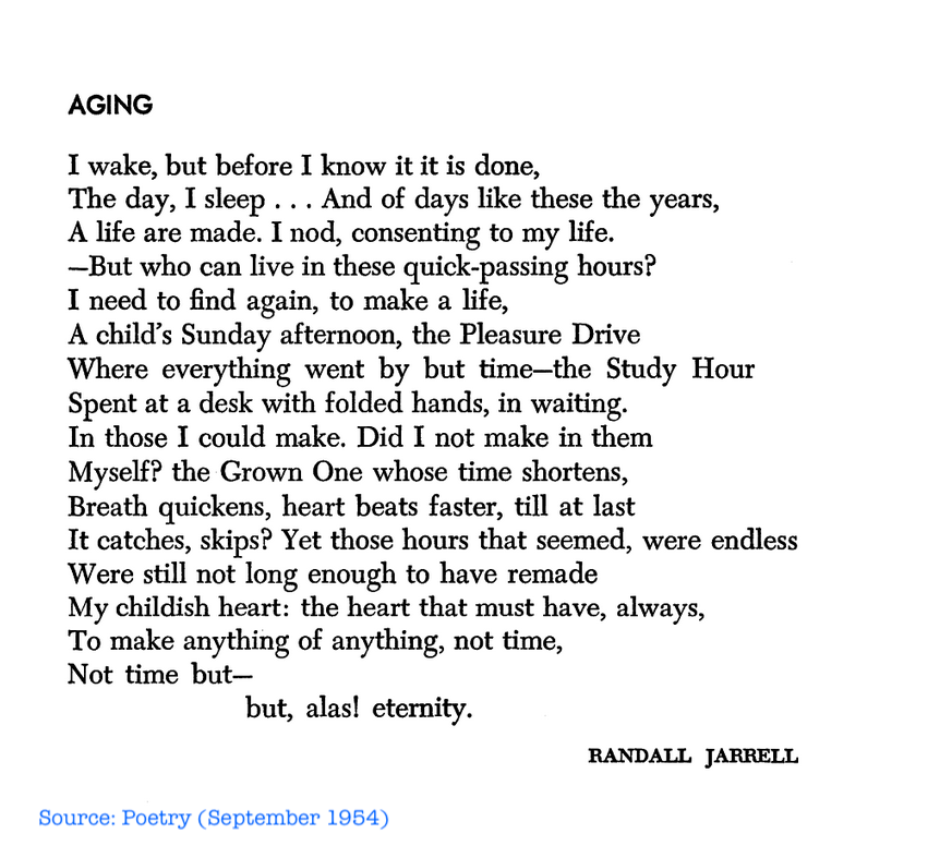 - Randall Jarrell 1914-1965- “A Man Meets a Woman in the Street”. ↩︎