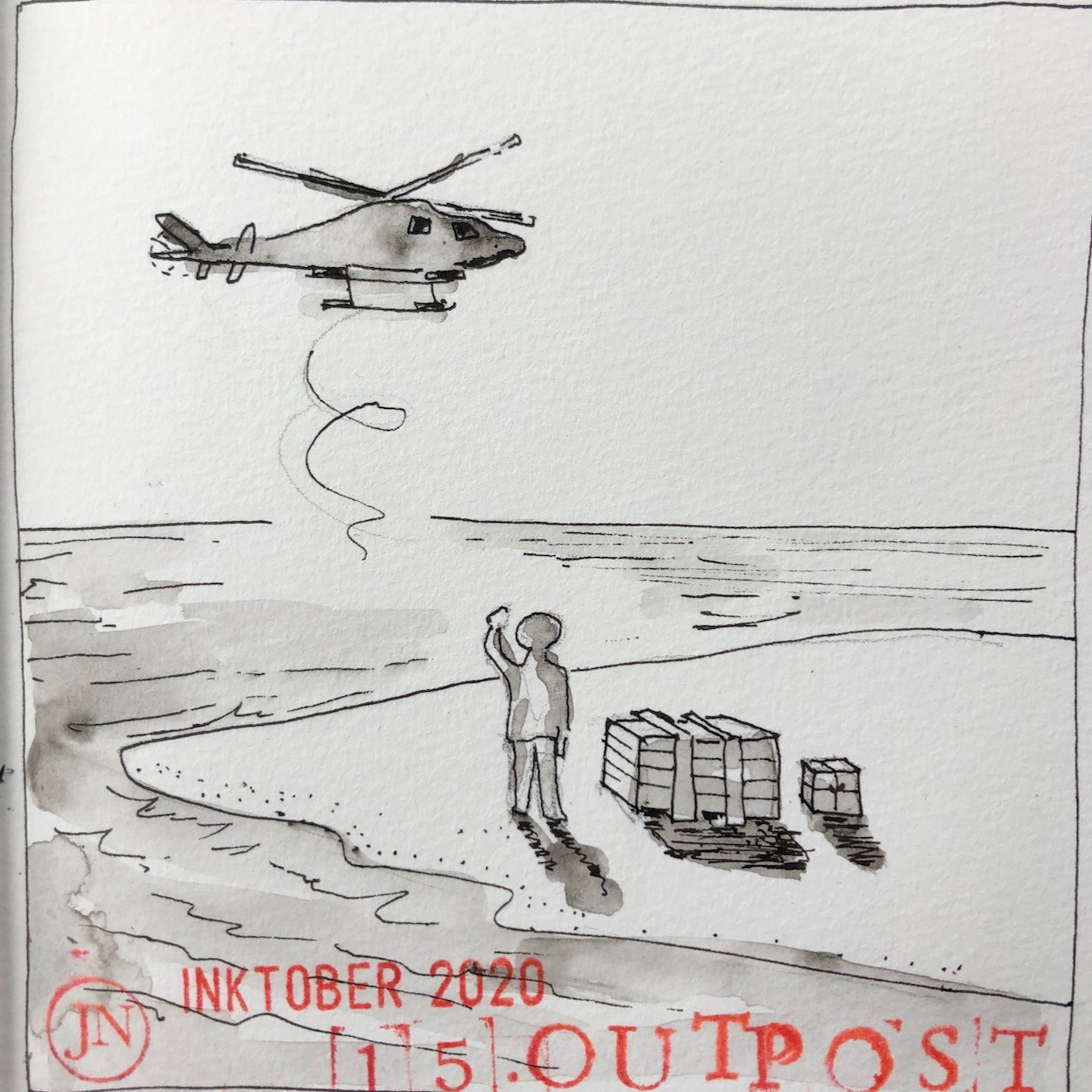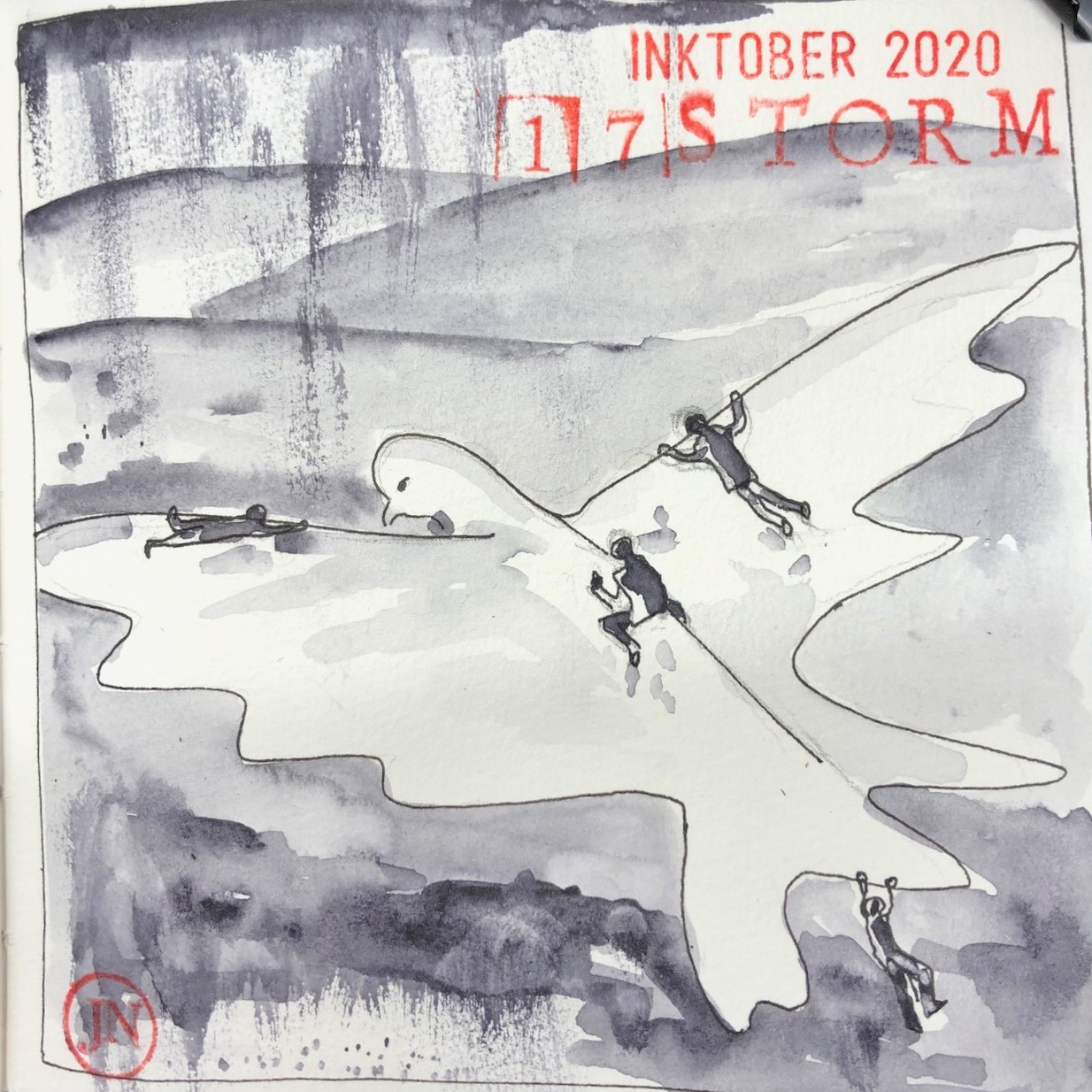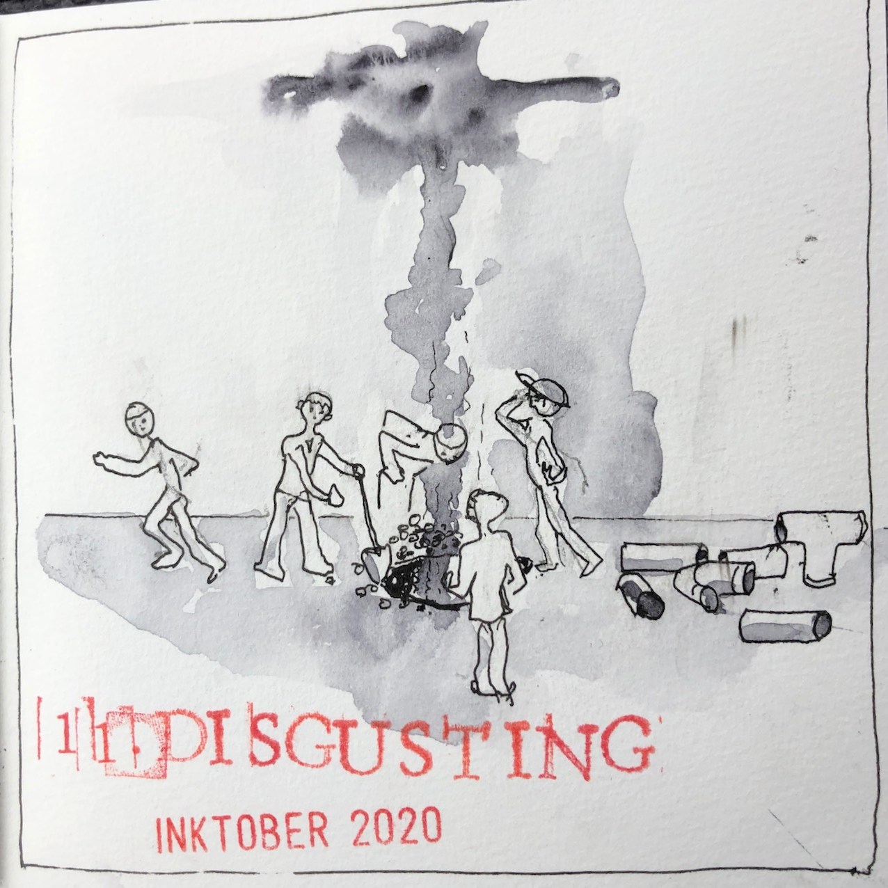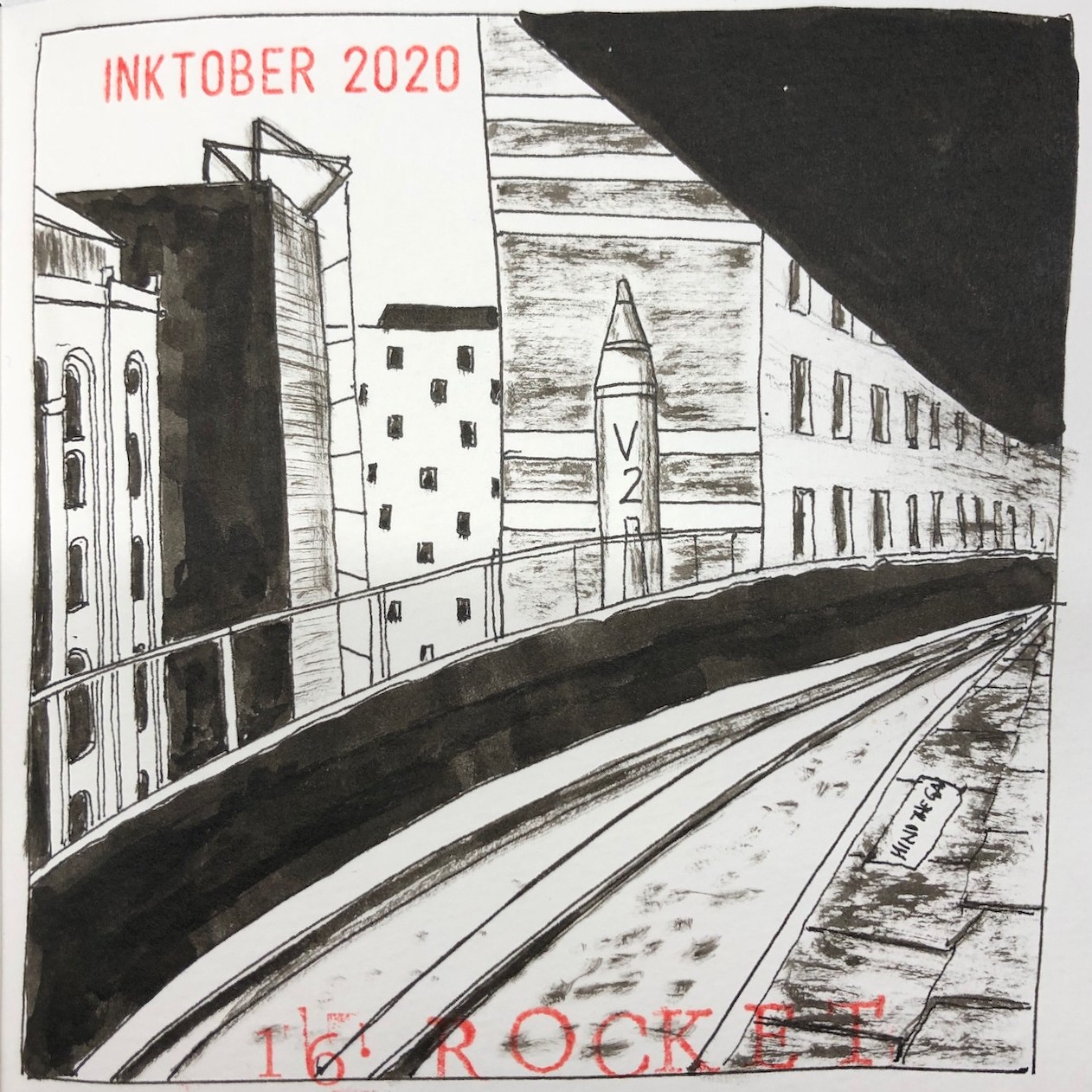 What is inktober? It’s a drawing challenge. There are prompts each day in October. The challenge I set myself is to do a drawing for each prompt, in ink, square. You can see the prompts here and on Inktober.com Why do I do it? It’s different from my “normal” work. My urban sketches and other art generally take several hours, and are from life (non-fiction). I do the inktober drawings quickly, in less than half an hour normally, and from imagination (fiction). Inktober jolts me into other worlds. It’s also a challenge, and enjoyable. I also like to see what other people draw, from the same prompt. The drawings are posted on instagram with the tag #inktober2020.
