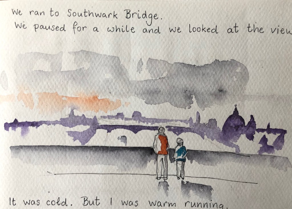 I made a book for a young friend. It describes one of our recent adventures: a circular run we completed together, before lockdown. Here are some of the pages: