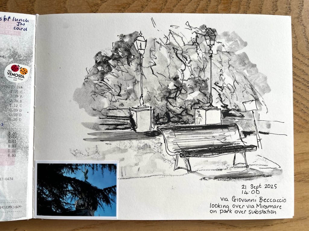 I have a sketchbook full of images. Here’s a quick flip through showing random glimpses of the visit: (19 second silent video)