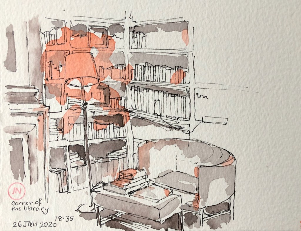 At an adjacent table three women were making design decisions for the website of a charitable organisation. This sub-page, that on the main menu, shall we include video? They discussed titles, and the placing of punctuation marks. I was concentrating on my drawing and only heard the odd word. Then one of the women described a conversation she’d had on a previous job, for a college. A fragment drifted over to me. She had quite a loud voice. “I told them it was “Porters’ Lodge”, and not “Porter’s” apostrophe “s”, because there was more than one porter. But they told me I was American and didn’t know anything. “