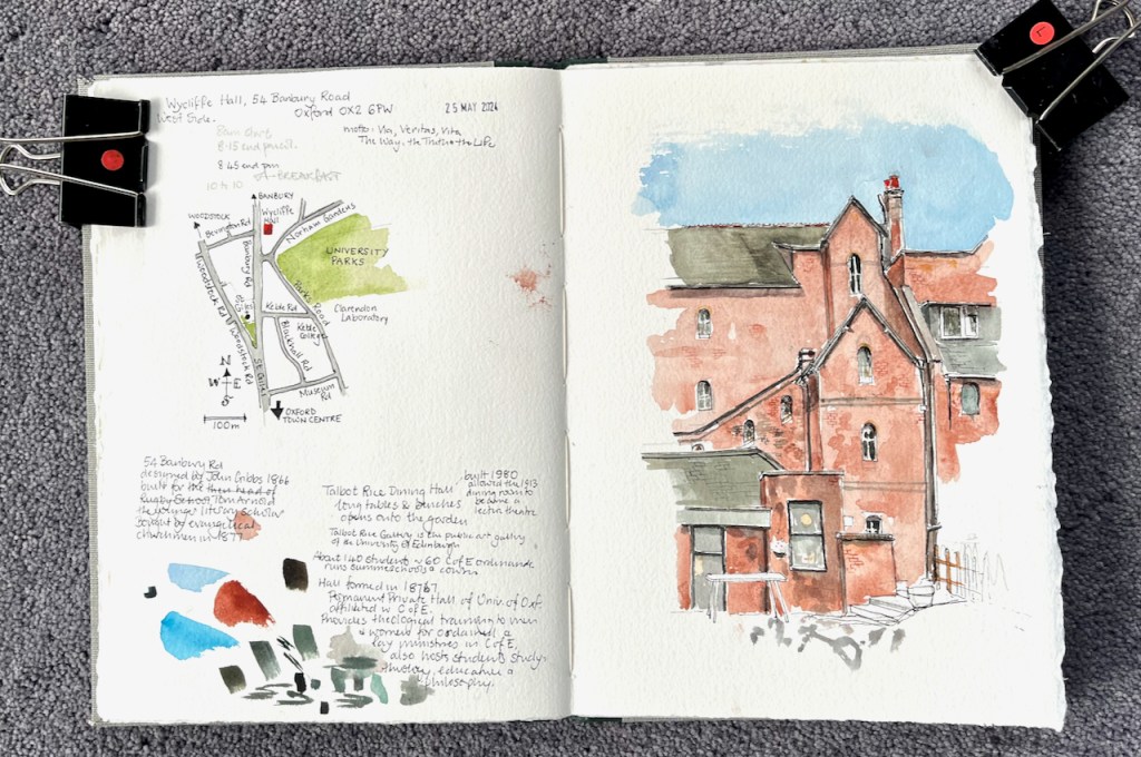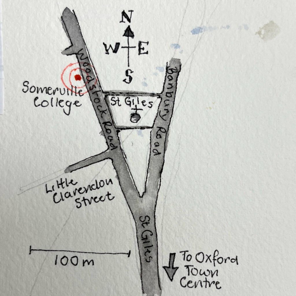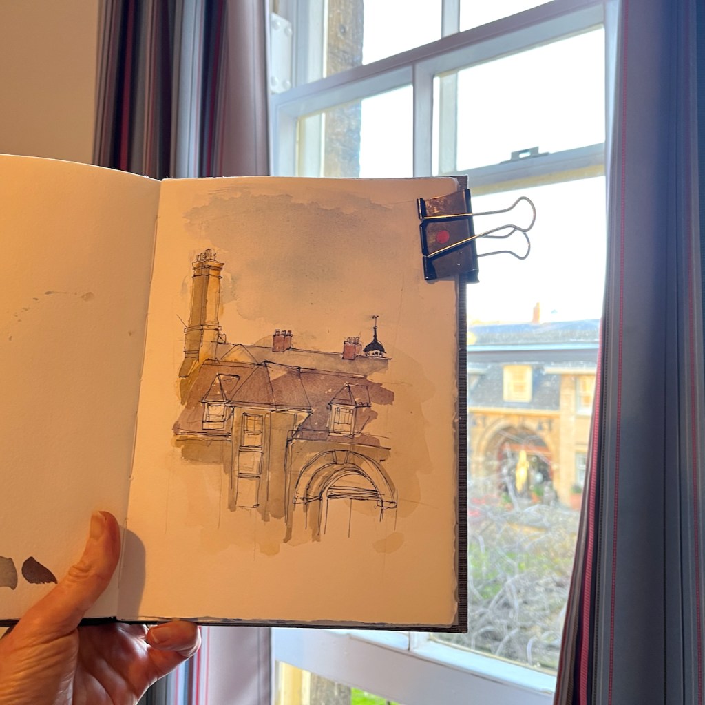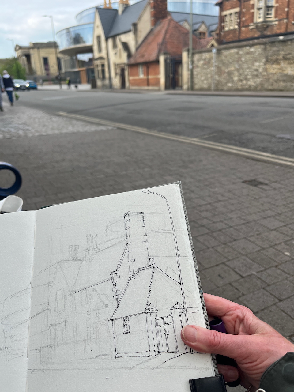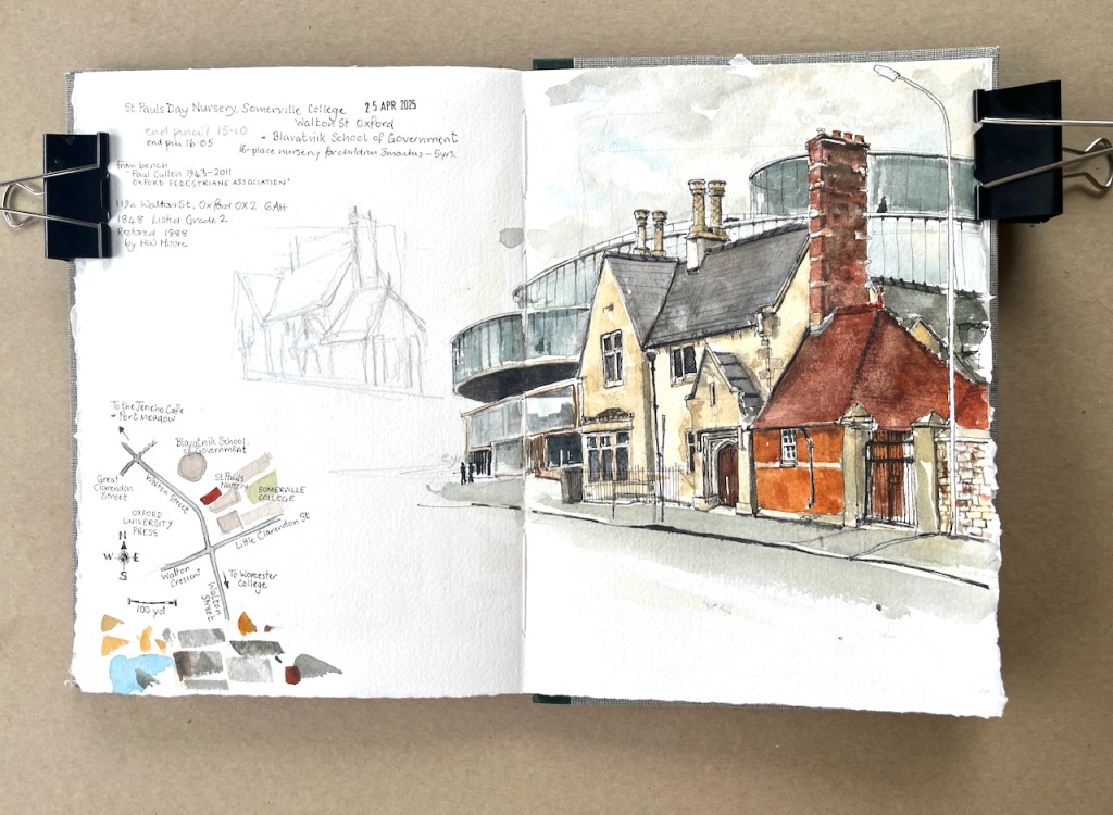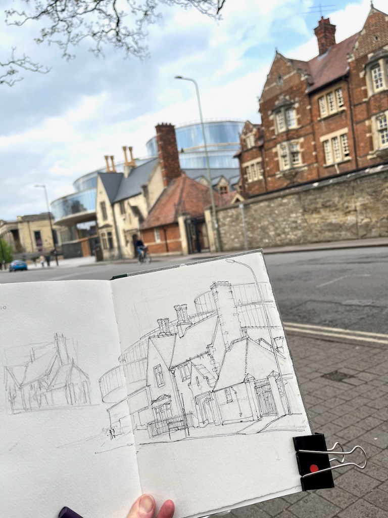 I made the sketch from a convenient bench outside the Oxford University Press. The bench was dedicated to