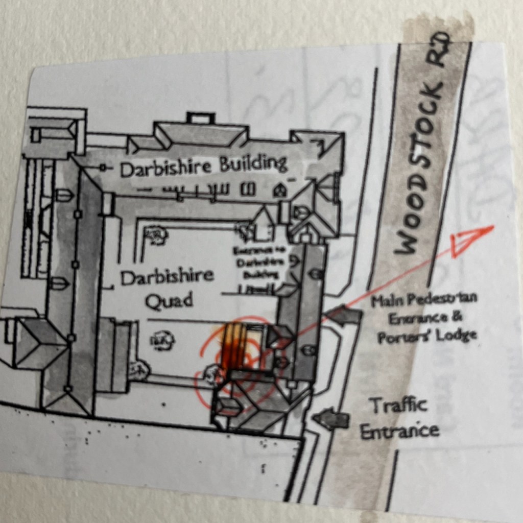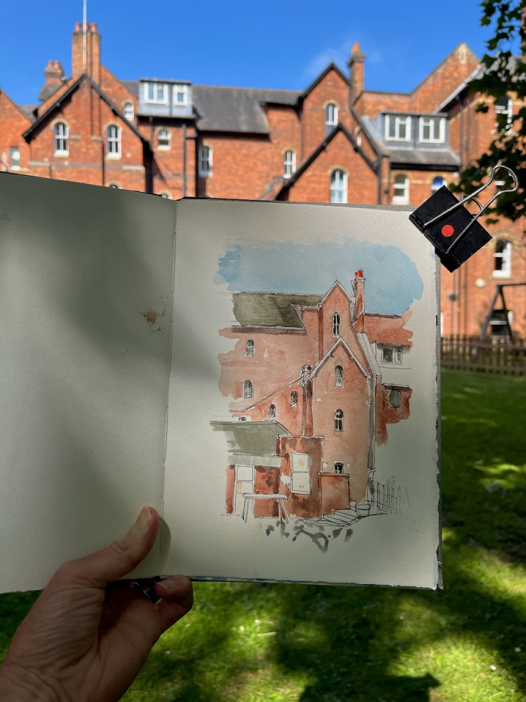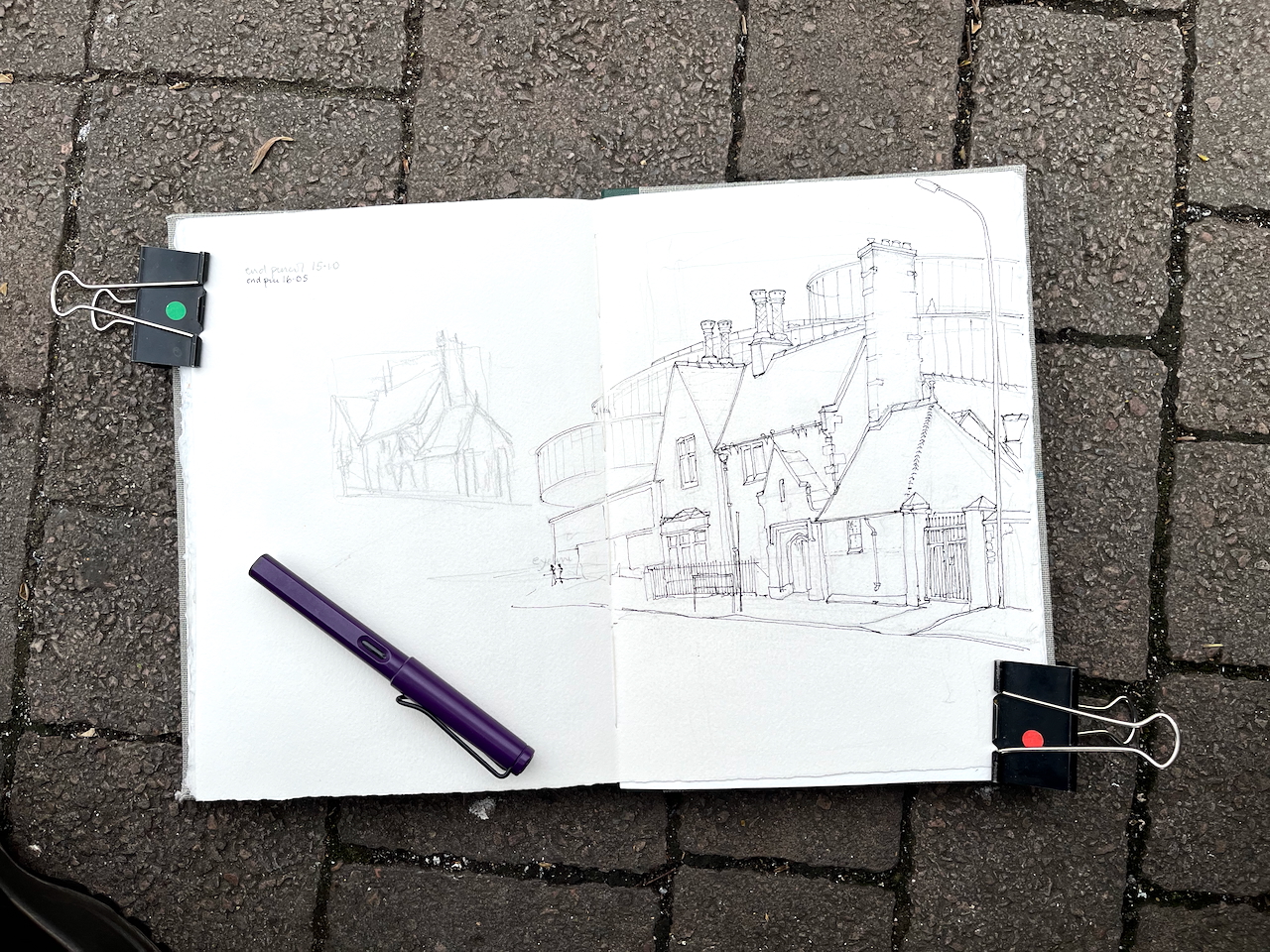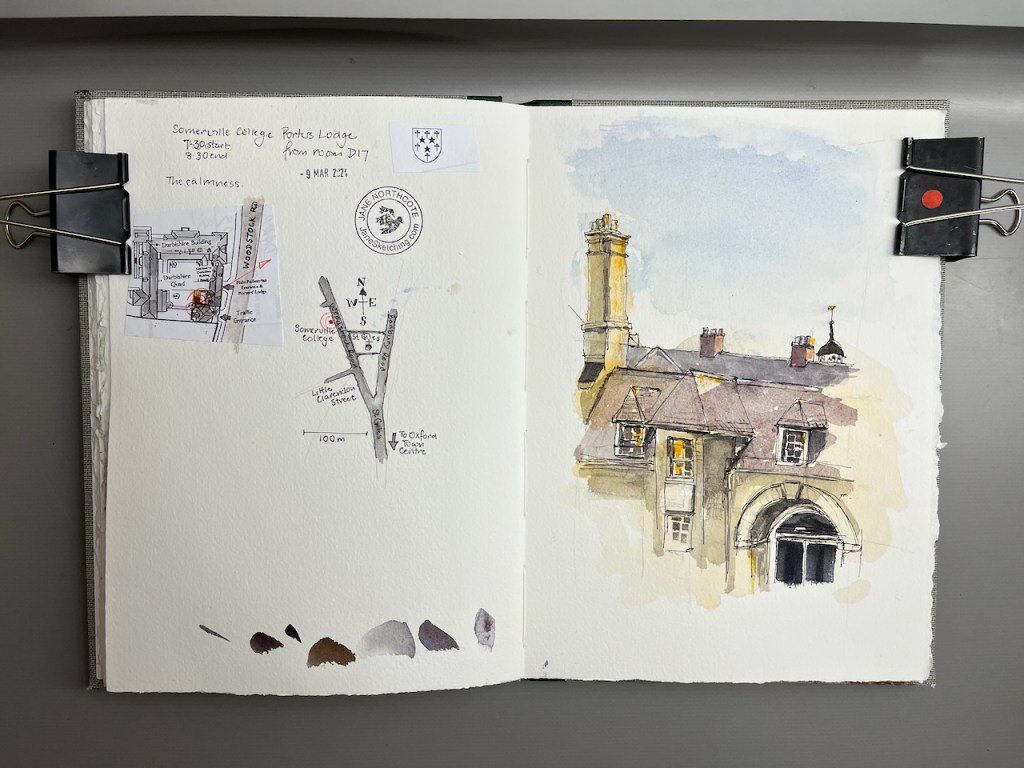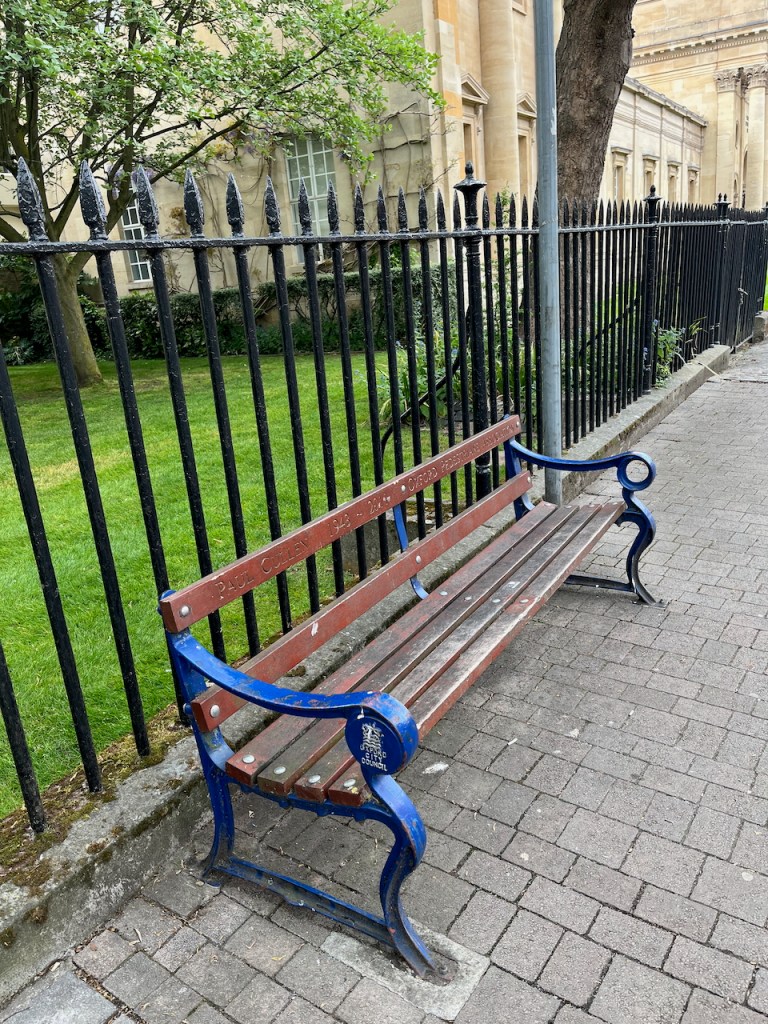 I made the sketch from a convenient bench outside the Oxford University Press. The bench was dedicated to