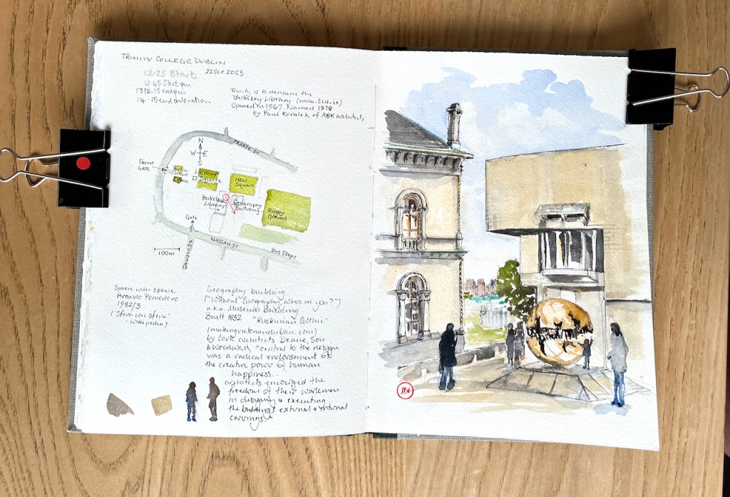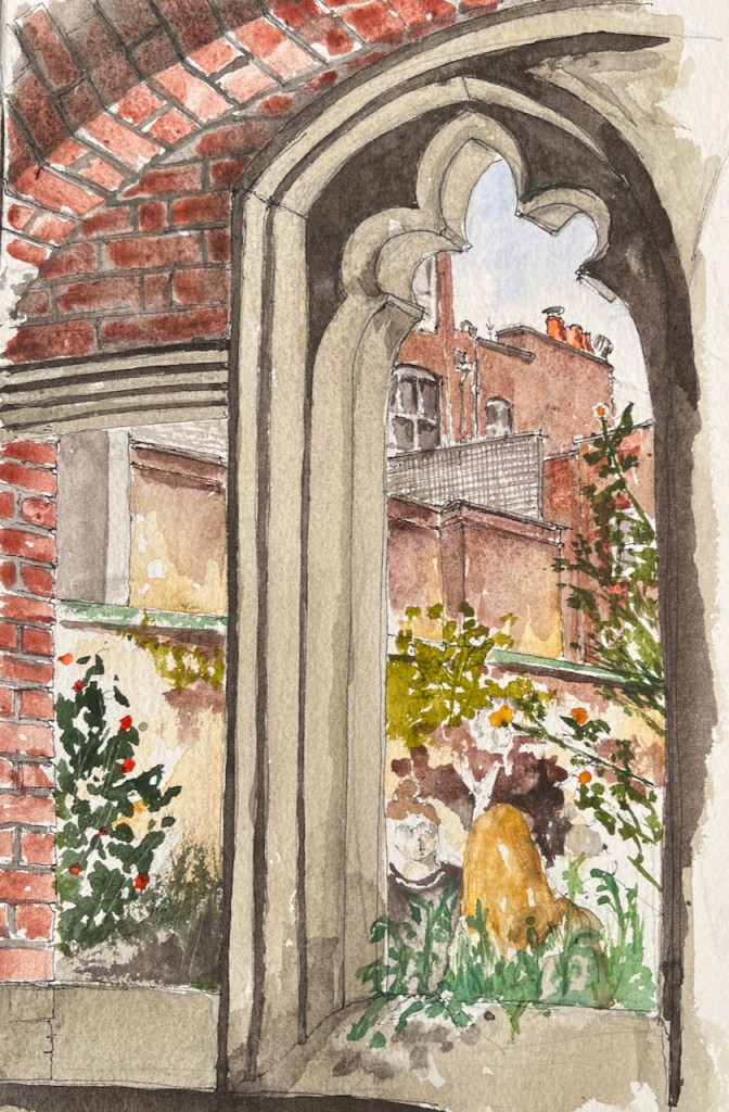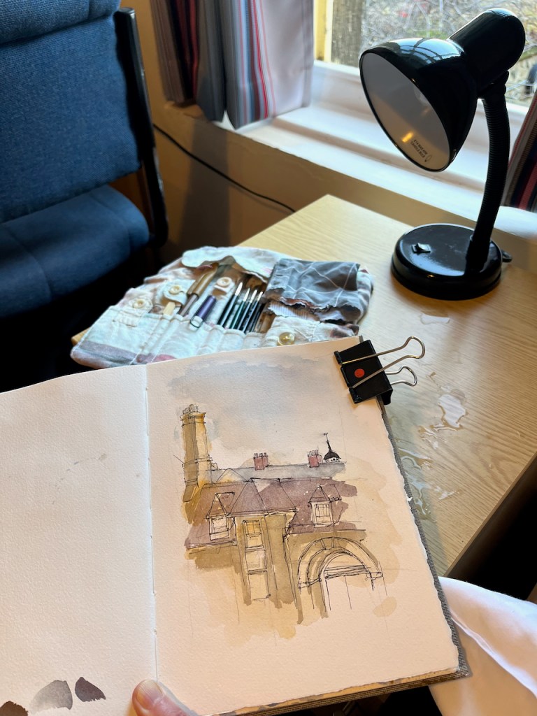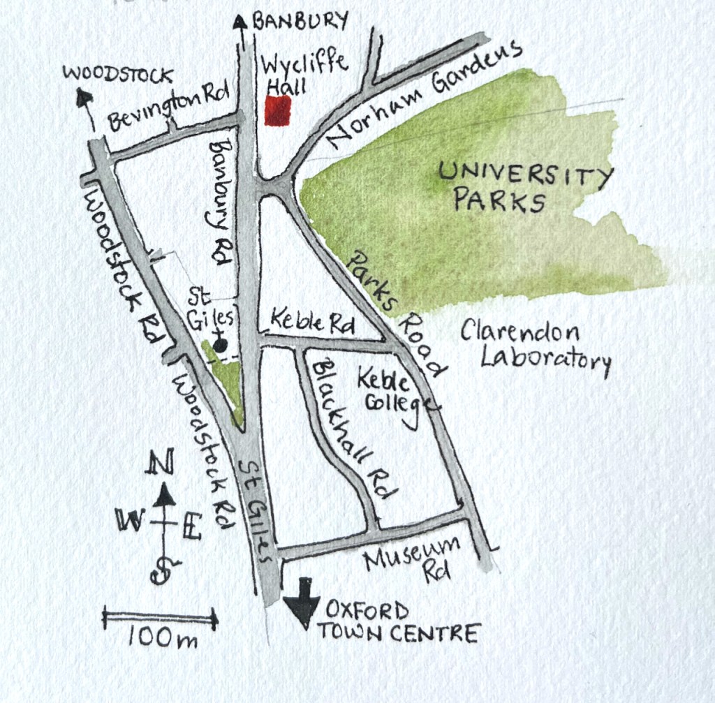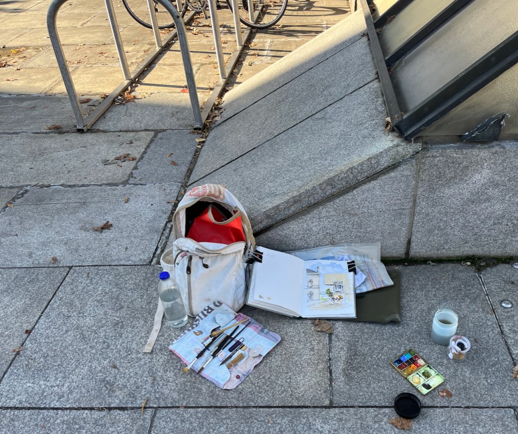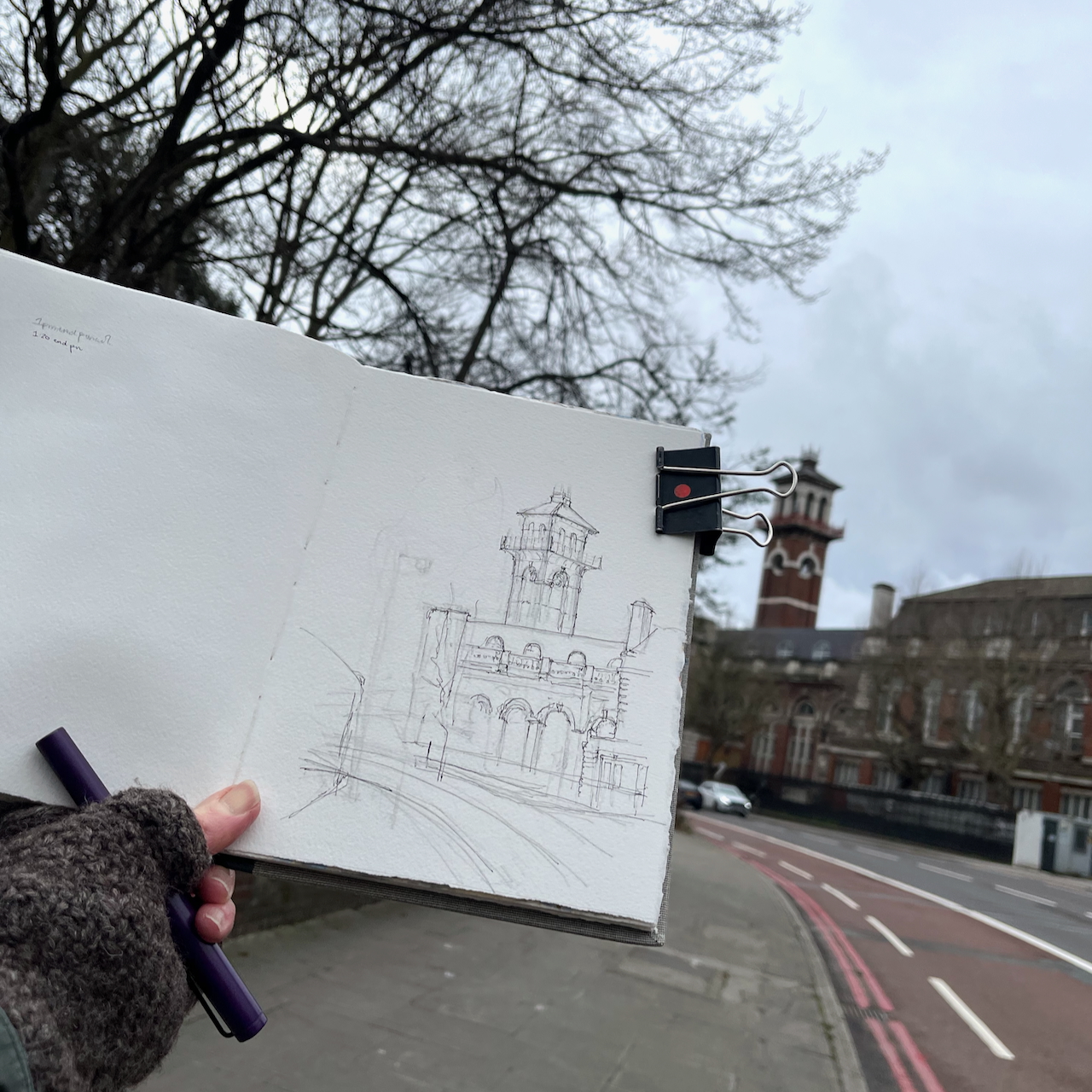 I made the sketch from a convenient bench outside the Oxford University Press. The bench was dedicated to