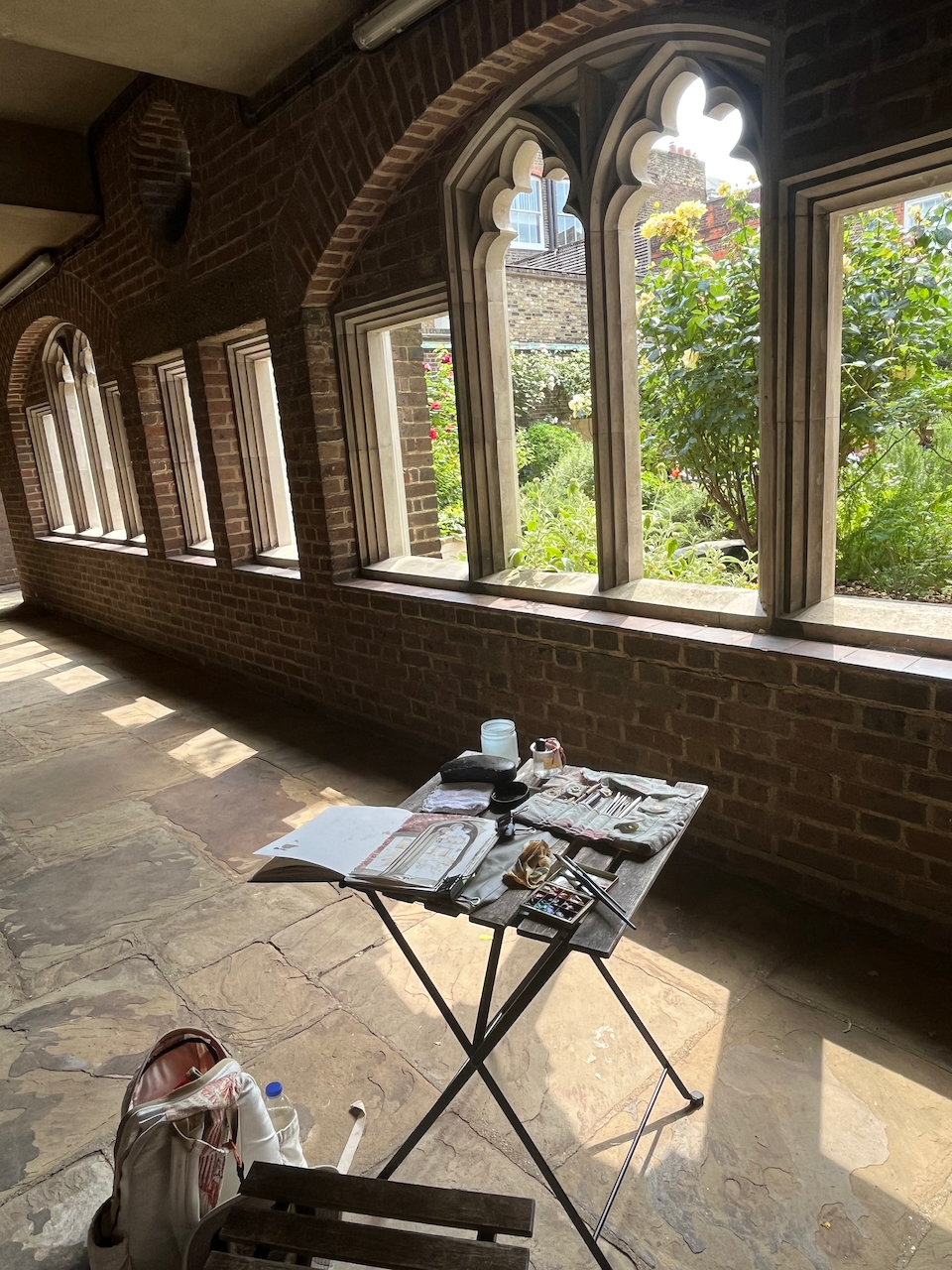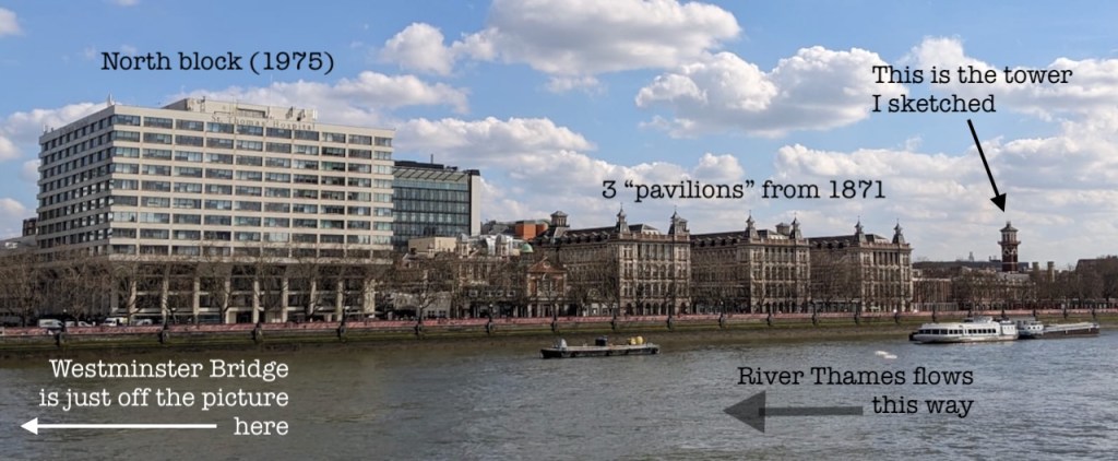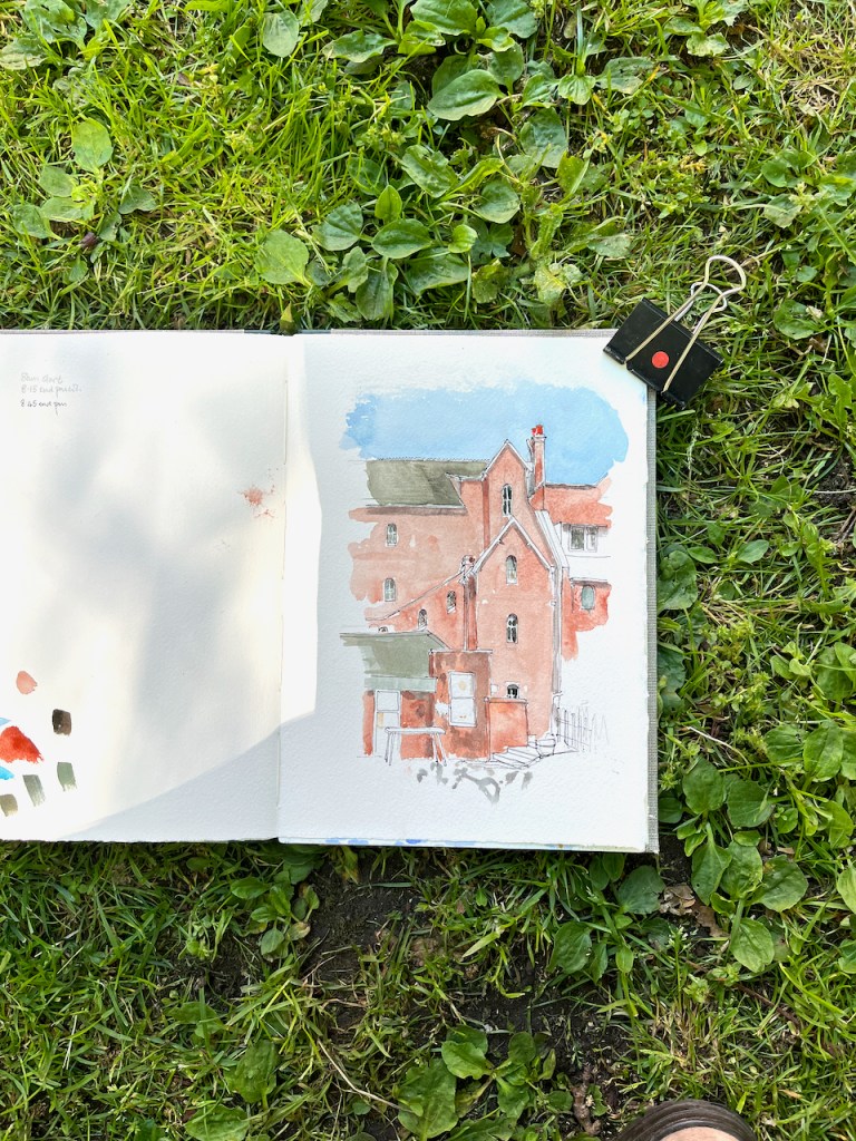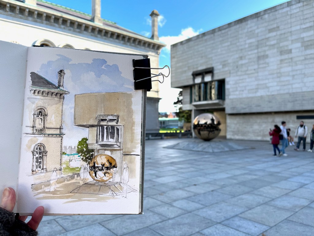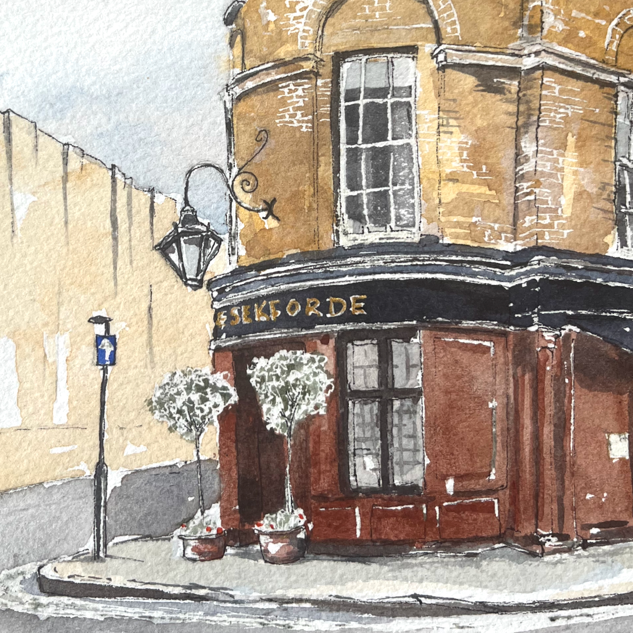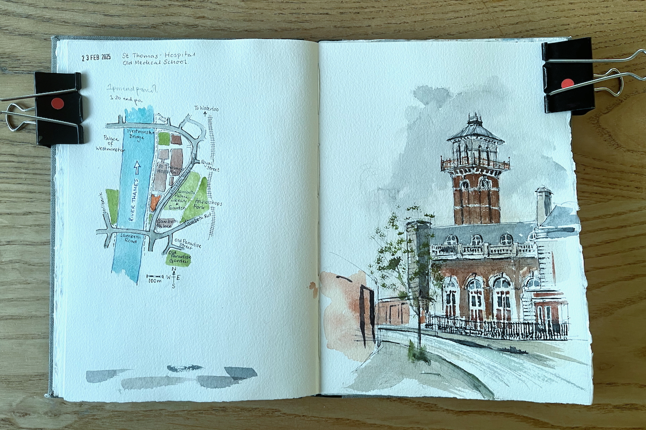 I made the sketch from a convenient bench outside the Oxford University Press. The bench was dedicated to