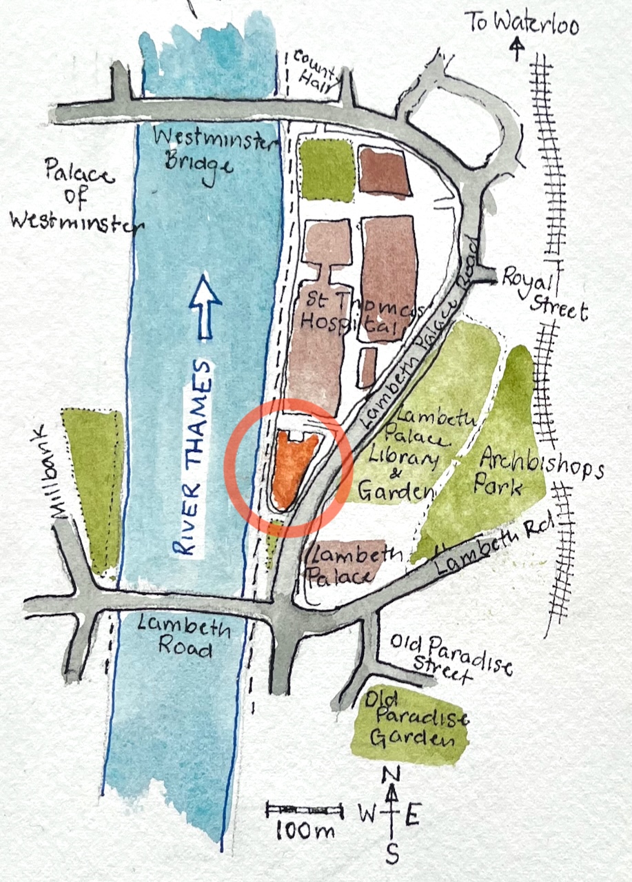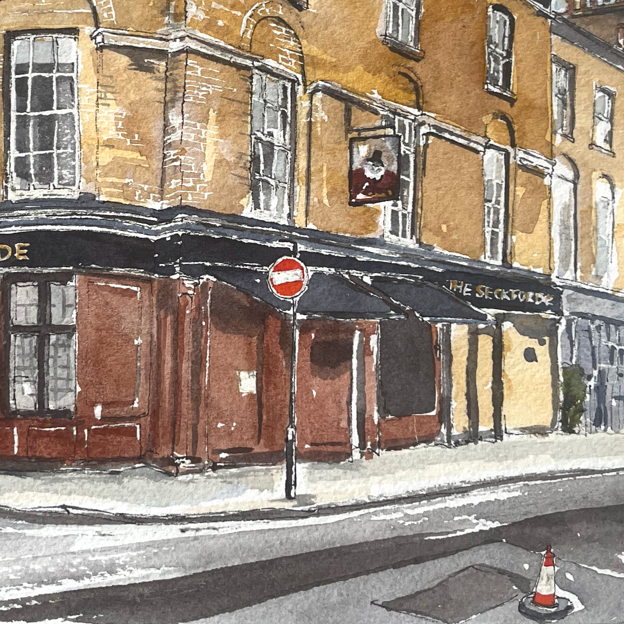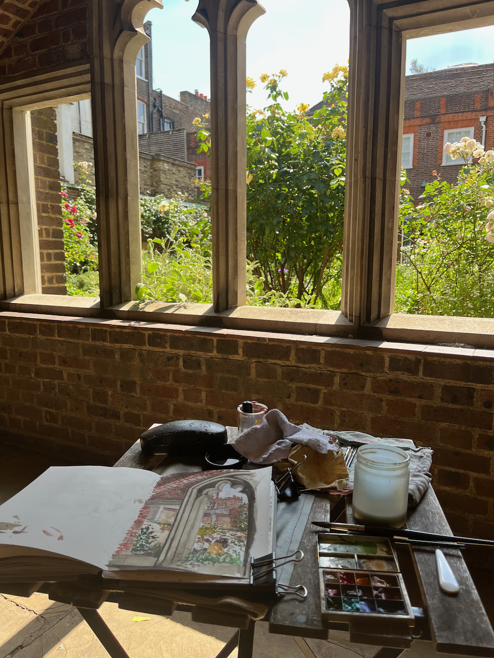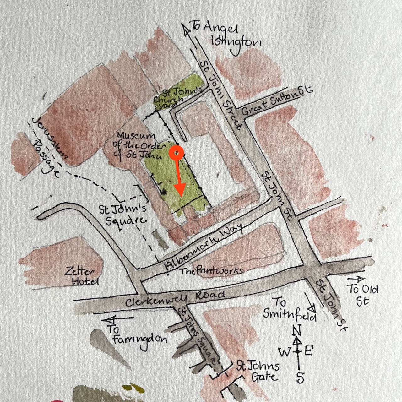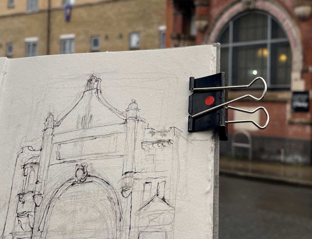 I made the sketch from a convenient bench outside the Oxford University Press. The bench was dedicated to