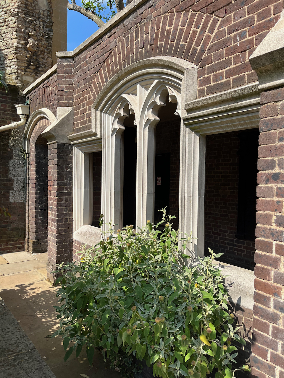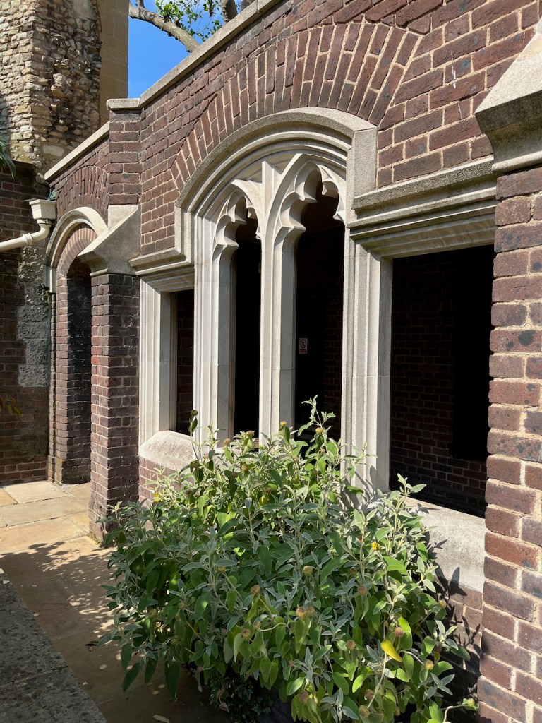 There is a stucco scroll with writing on the gable of the nursery building. Try as I might I could not read it.I assumed my ageing eyes were at fault. So I stopped two young people on the pavement and asked them if they could read it. They took my request seriously, and gave the task their full attention, which was kind of them. However they could not read it either. “Something Something CCC something something” was our joint conclusion. 1848 would be MDCCCXLVIII. Does it say that? If you are walking along Walton Street with a high-powered telescope, or if you have an old photo which shows the building in a less eroded state, then can you tell me what it says?