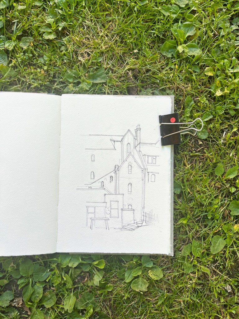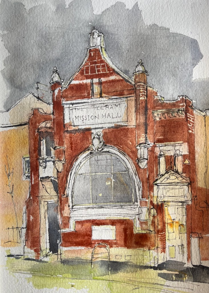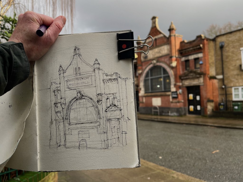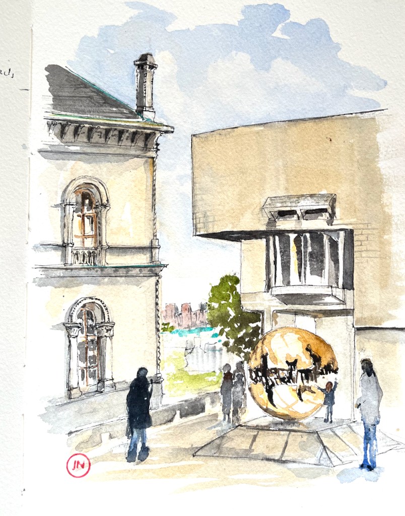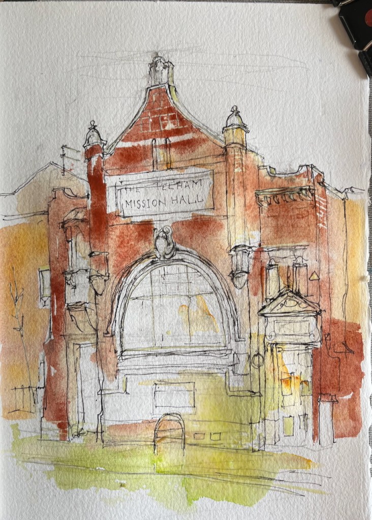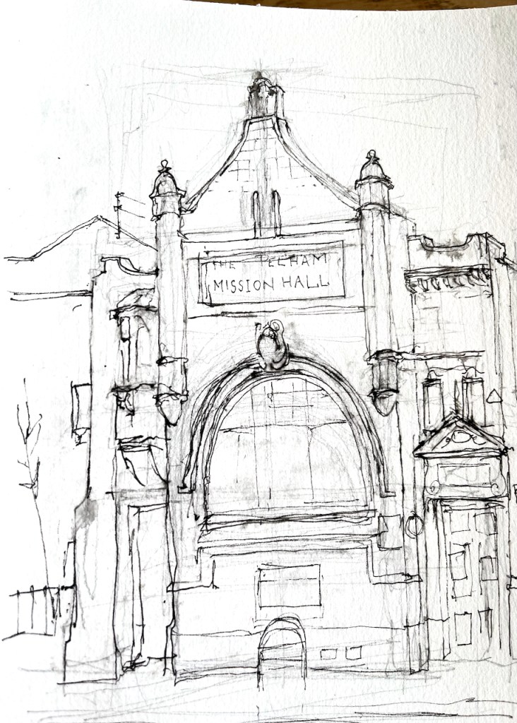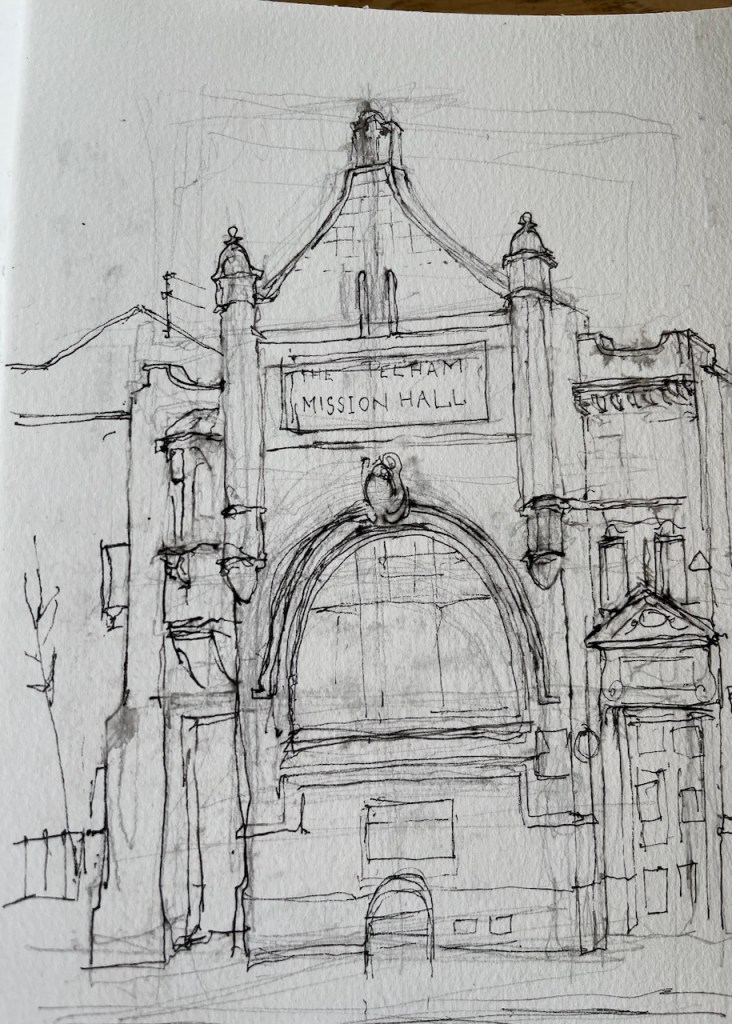 The inscription on the bench was easily read. But there was an inscription on the building I’d been drawing, and I couldn’t read that.