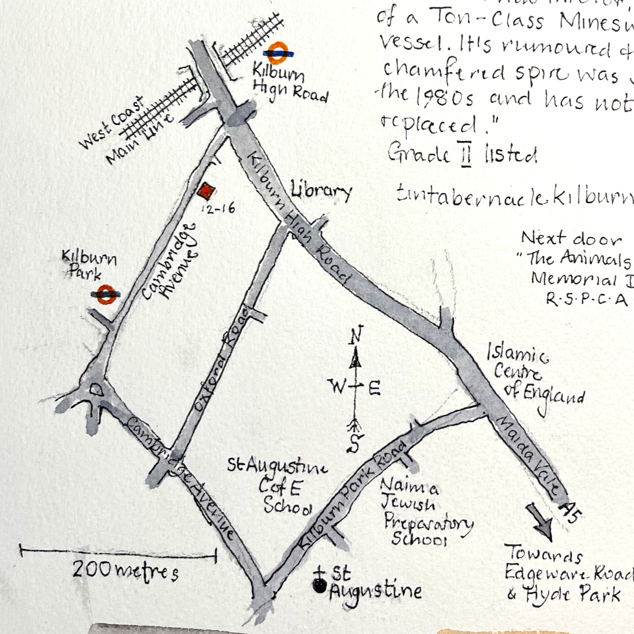 - St Paul’s: the impressive Grecian temple building on Walton St is no longer a church, but the “St Paul’s” name lives on. I’ve done an earlier sketch which shows St Paul’s Nursery, still very much in operation and part of Somerville College.