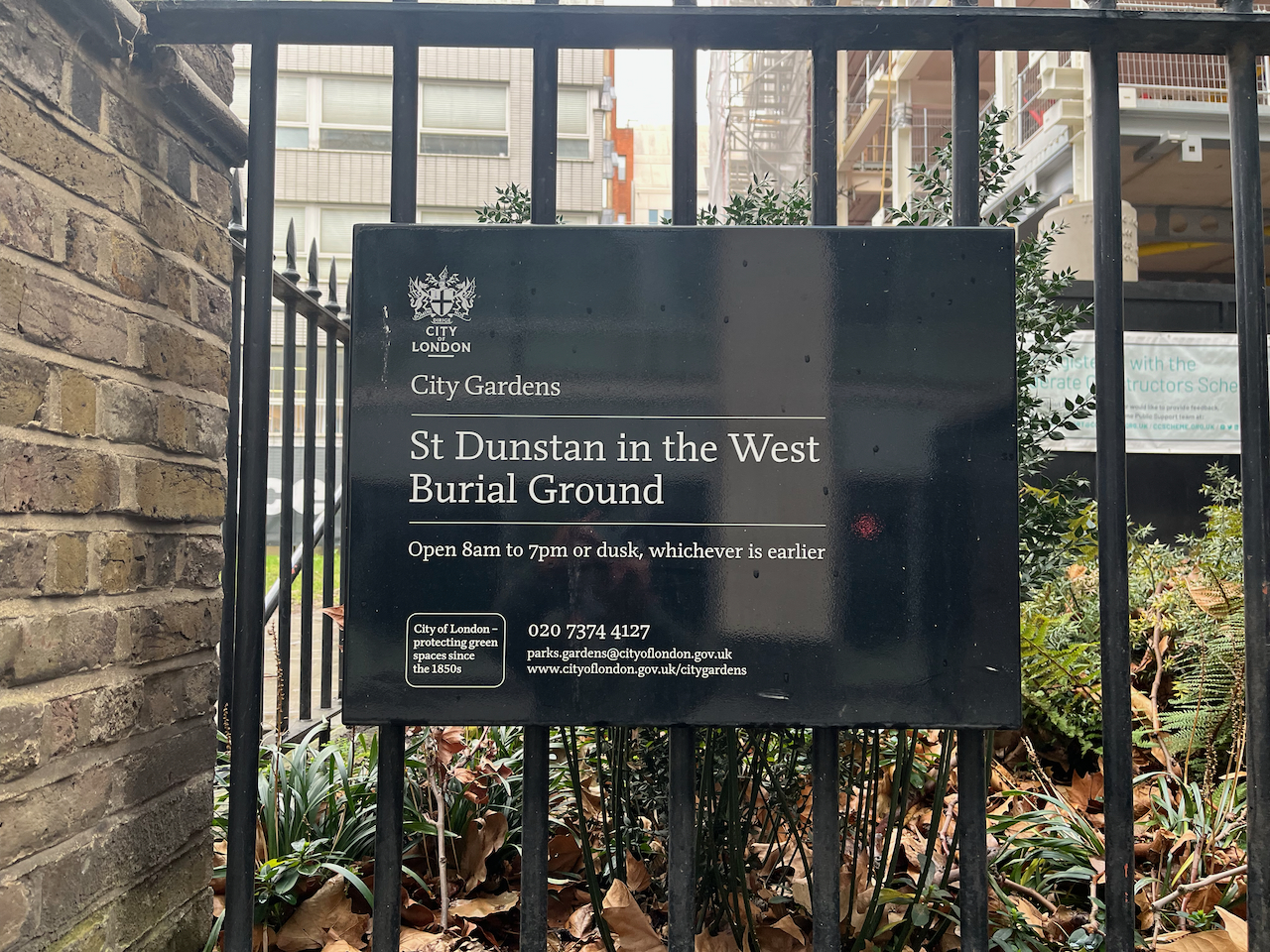 St Dunstan-in-the-West Burial Ground, entrance on Breams BuildingsSt Dunstan-in-the-West Burial Ground