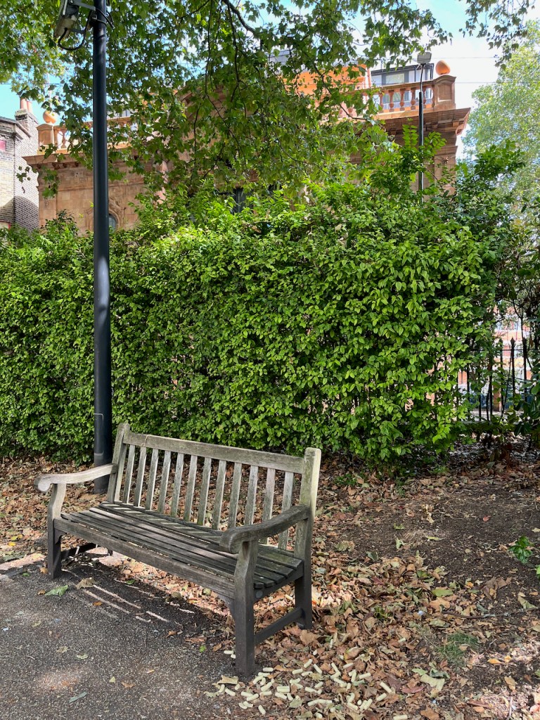 The church has a lovely quiet garden. I sketched from the wooden seat, watched by a robin.