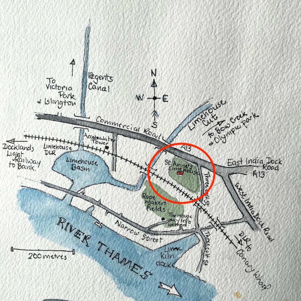 Here are other sketches I’ve done around Limehouse and Wapping, near here: