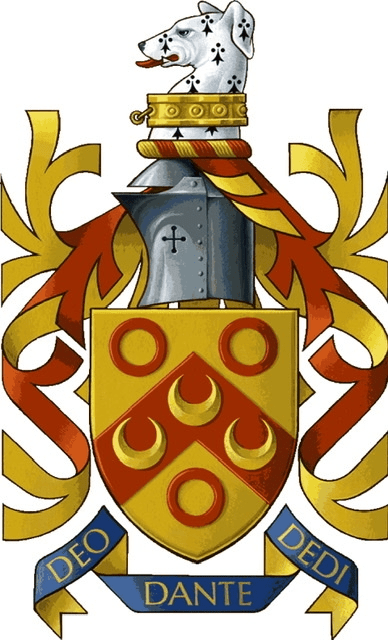 Sutton Arms pub sign: “DE[o] DANTE DED[i]”Thomas Sutton’s Coat of Arms. See the greyhound. Source: Charterhouse School on Wikipedia