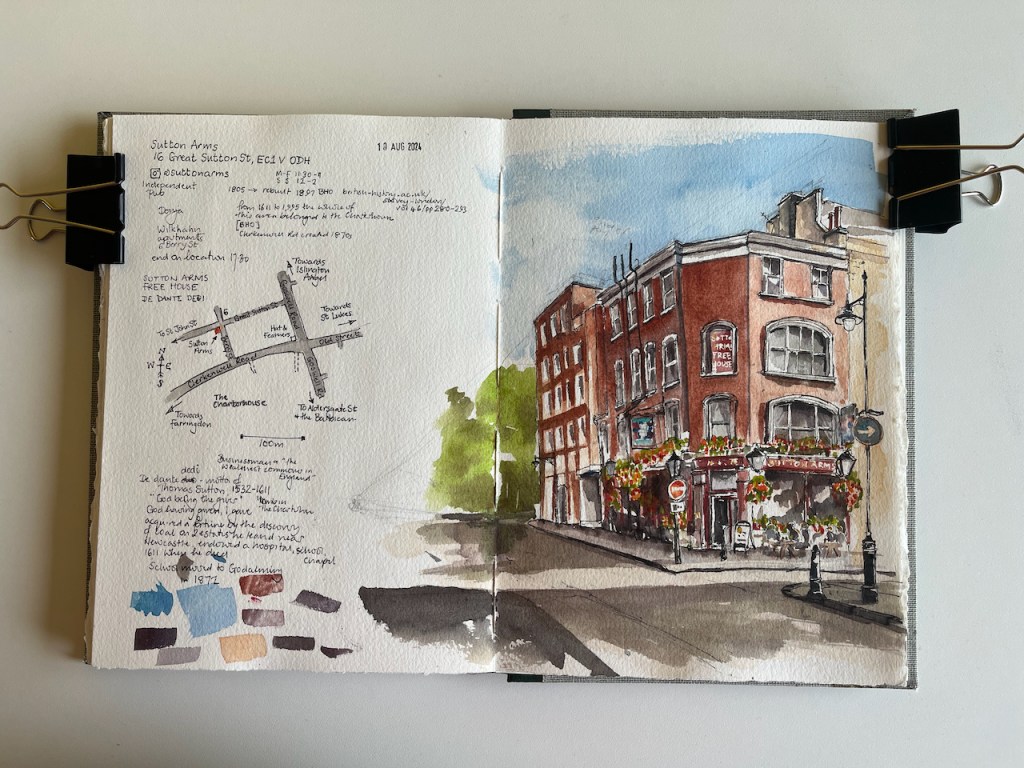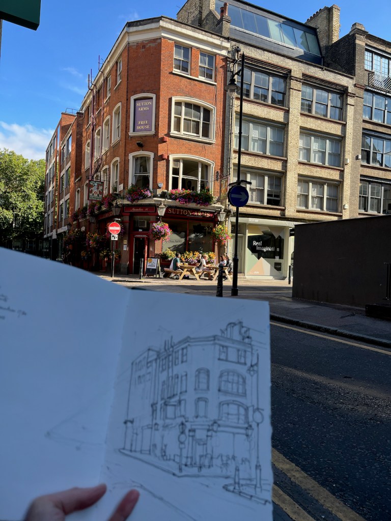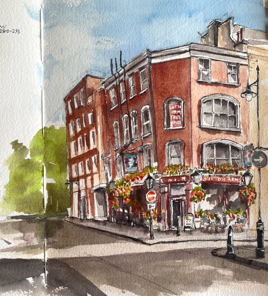 Sutton Arms, 16 Great Sutton Street, EC1V 0DH, sketched 10 August 2024 in Sketchbook 14