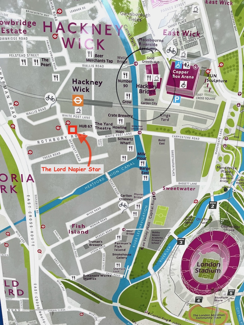 Hackney Wick is in East London between Victoria Park and the Olympic Park.
