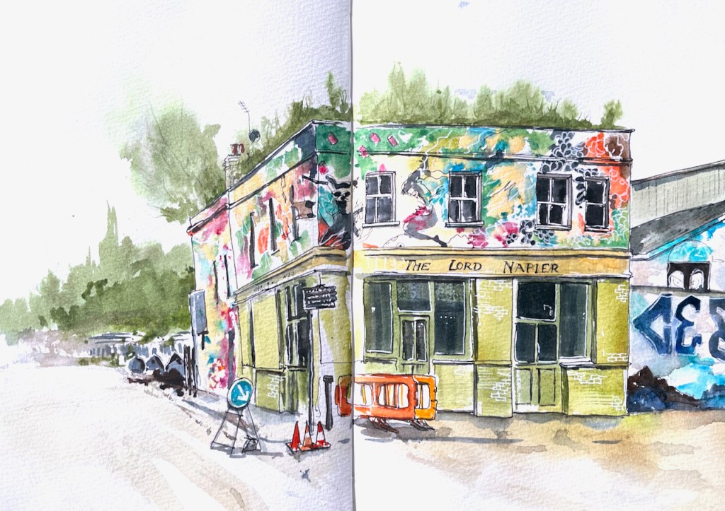 Here is a sketch of the remarkable pub, The Lord Napier, now the Lord Napier Star.
