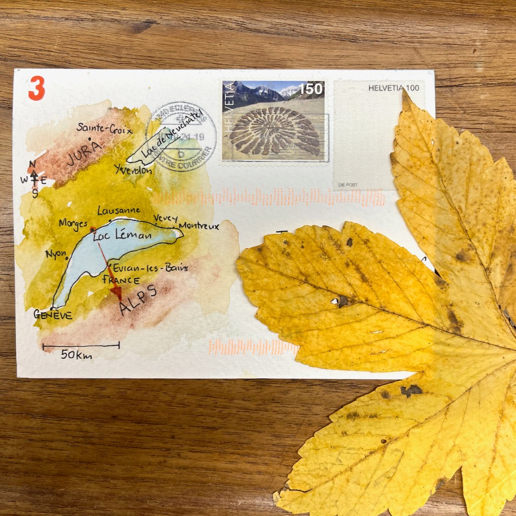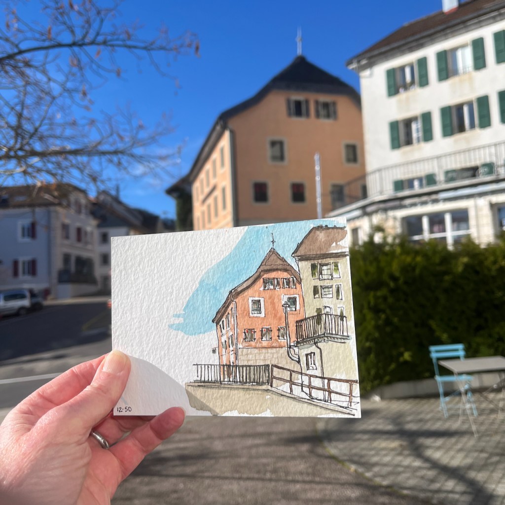 Here are postcards from Switzerland, sketched quickly on 4″ x 6″ watercolour postcards.