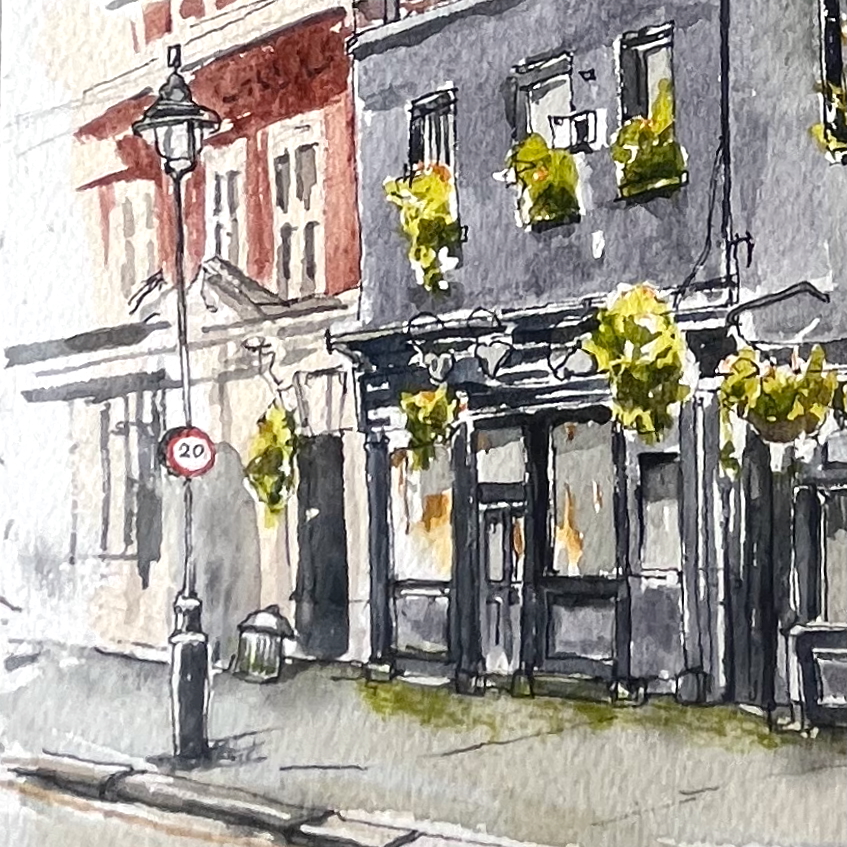 I sketched the pub on a cold January day. I did the pen and ink on location and then retreated to my desk to do the colour.