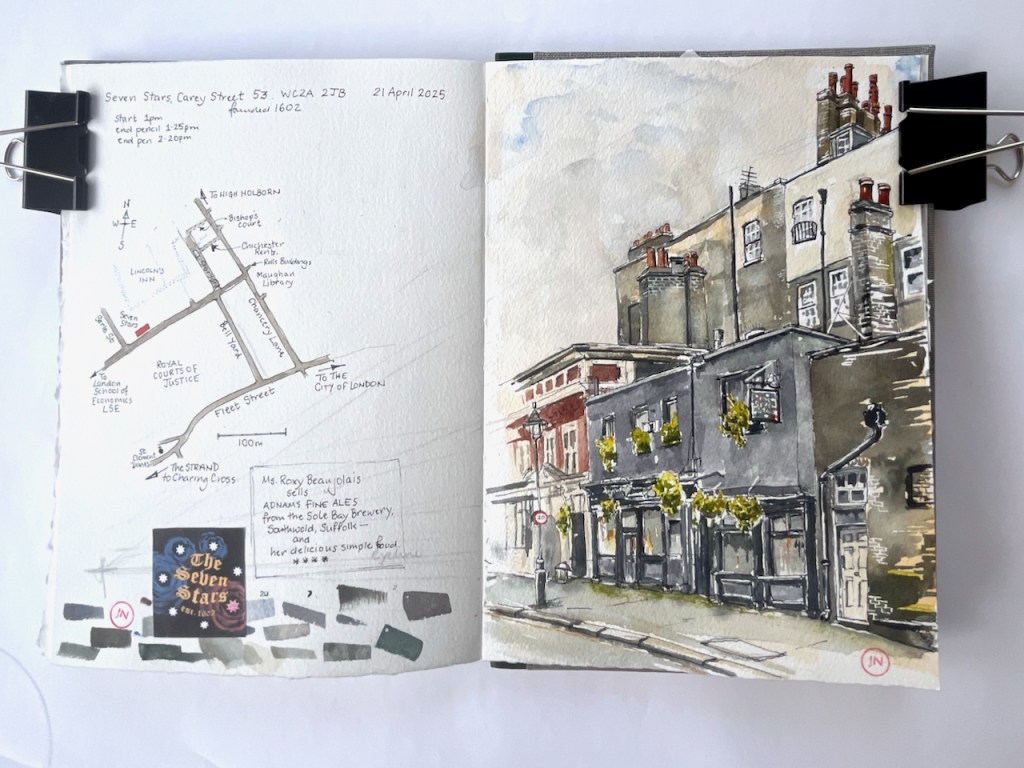 The Perseverance, 63 Lamb’s Conduit Street WC1N 3NB, sketched 4th September 2025 in Sketchbook 16