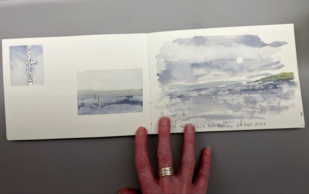 John Purcell Paper produce their own sketchbooks. I used this one for the “Sketch and Sail” adventure in September 2023. It is their stock code SK530N “Black Cover with a blue spine” – 100% Cotton Mould Made Watercolour Paper 300gsm