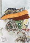 Bastion House aka 140 London Wall is a huge modernist monolith, reminiscent of the monolith in “2001 – A Space Odyssey”. I couldn’t find a site to draw the monolith part today, so here is a view at Podium Level, looking West towards the Museum of London. You see the dark undercroft, walkways and a…