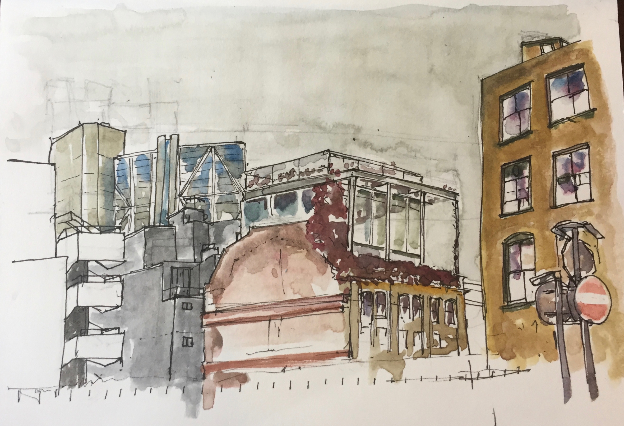 Here is the view from high up in the marvellous Skip Garden at Kings Cross. Coal Drops Yard roofs are in the background, behind the crane.
