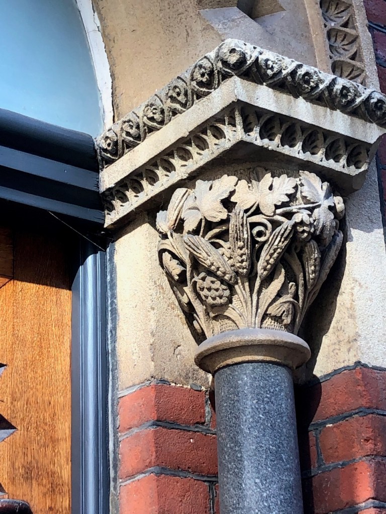 It’s clearly the former headquarters of the Brewers Yard. The door is very splendid. The pillar on one side has hops, and on the other side, barley and hops.