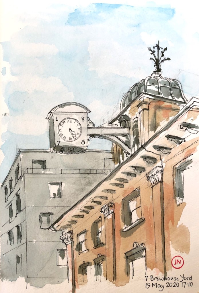 The pub itself has a roof garden, with brightly coloured bunting and many flowerpots. I drew this picture yesterday, during Lockdown 2, so sadly it is closed. However it is going on my “After Lockdown” list.