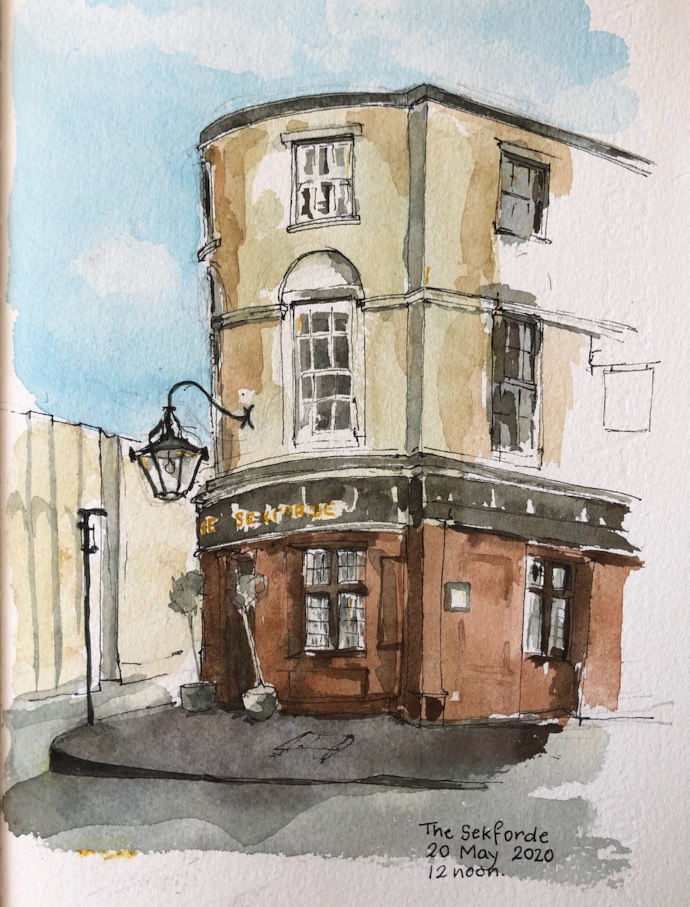 I sketched The Sekforde, sitting on a step on the other side of the road.