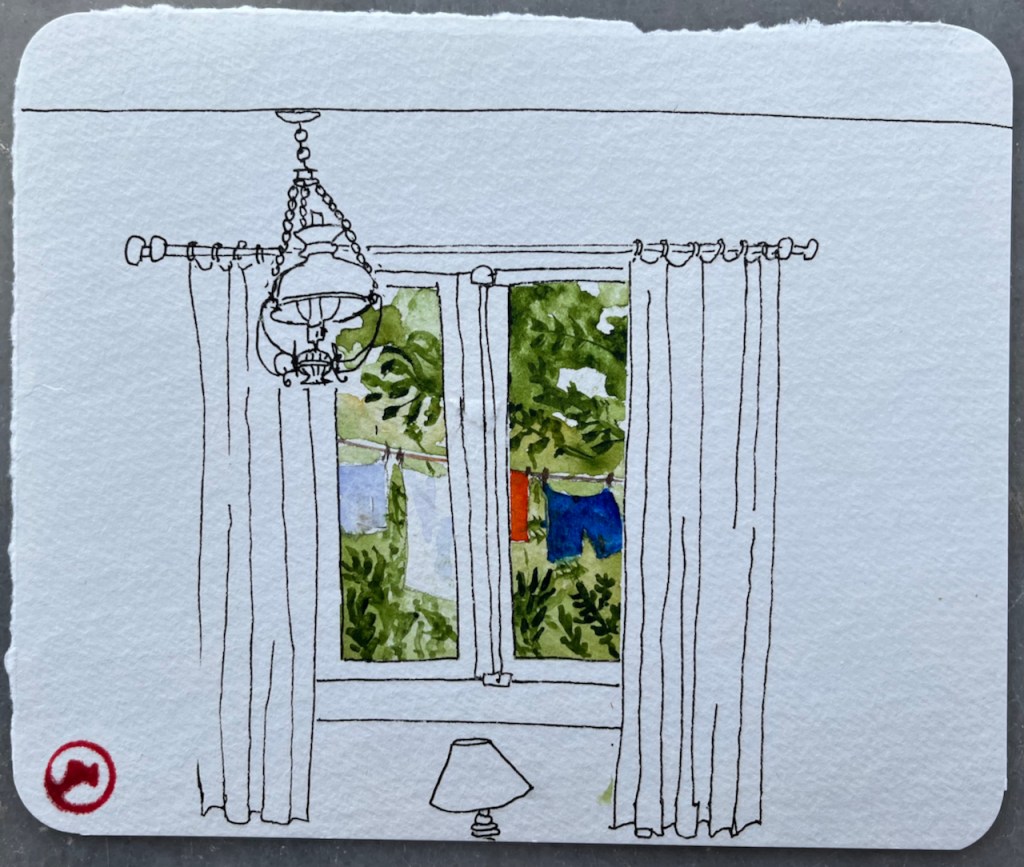 This is De Atramentis Black document ink on high quality watercolour paper, Saunders Waterford, in a small book 6″ by 4″ from the Vintage Paper Company.