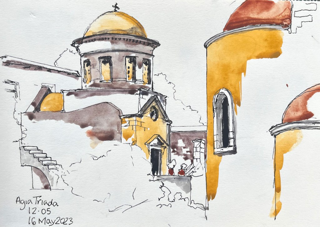 Arches make poetry in the Agia Triada monastery: a pre-departure pause….