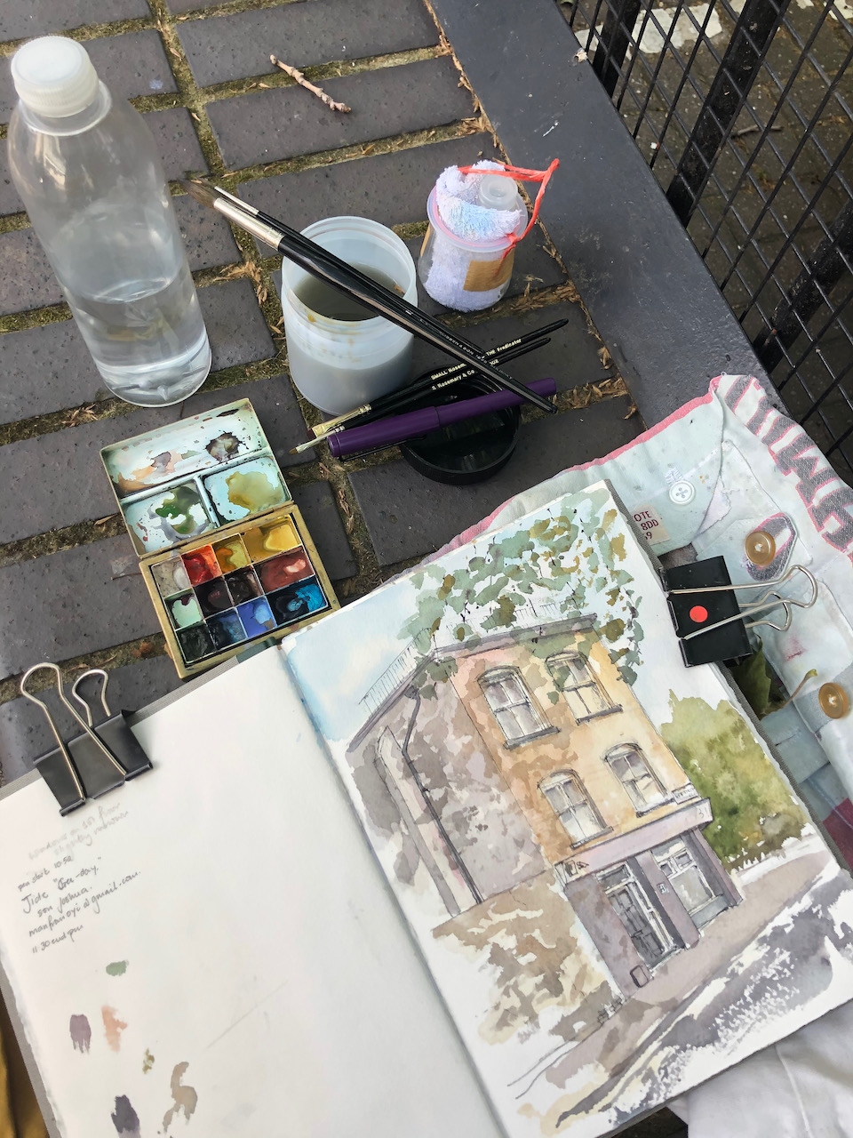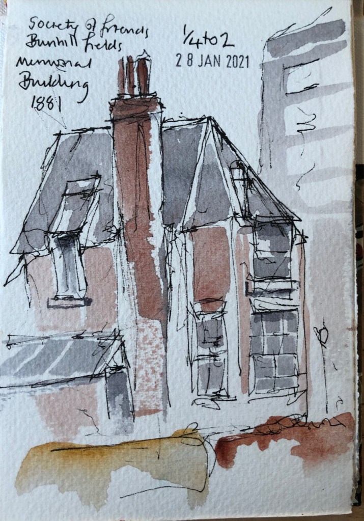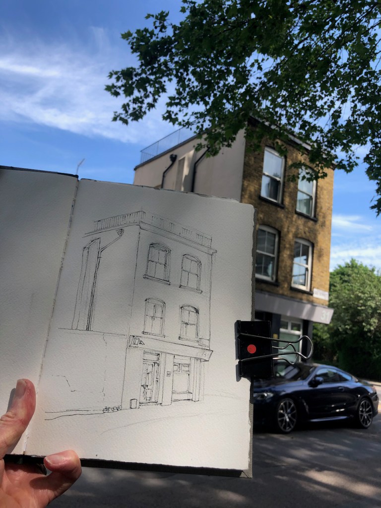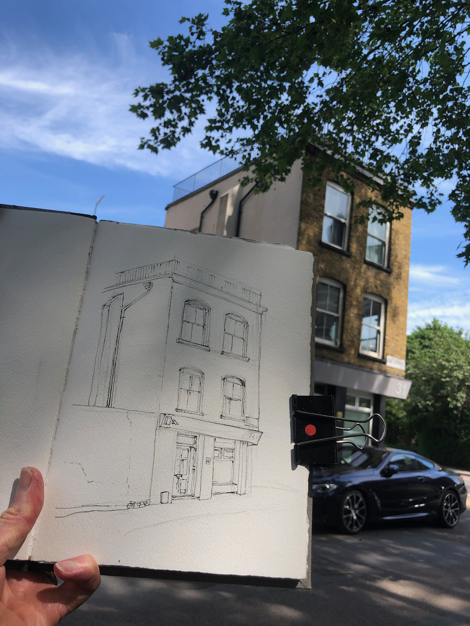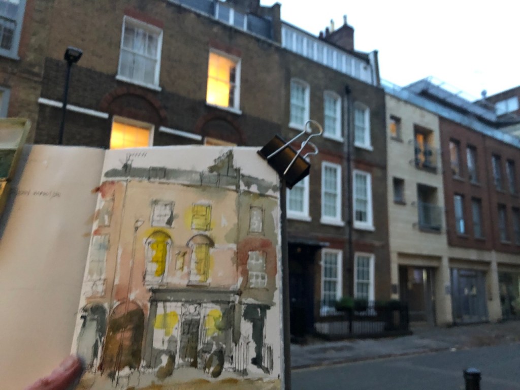 31 Central Street, EC1. Sketched 2nd June 2021 on location, 7″ x 10″ in Sketchbook 10