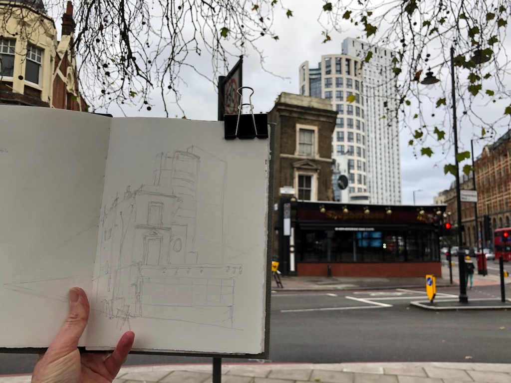 84 Clerkenwell Road, EC1M, 21st January 2022, 14:30, 7″x 10″ in Sketchbook 11