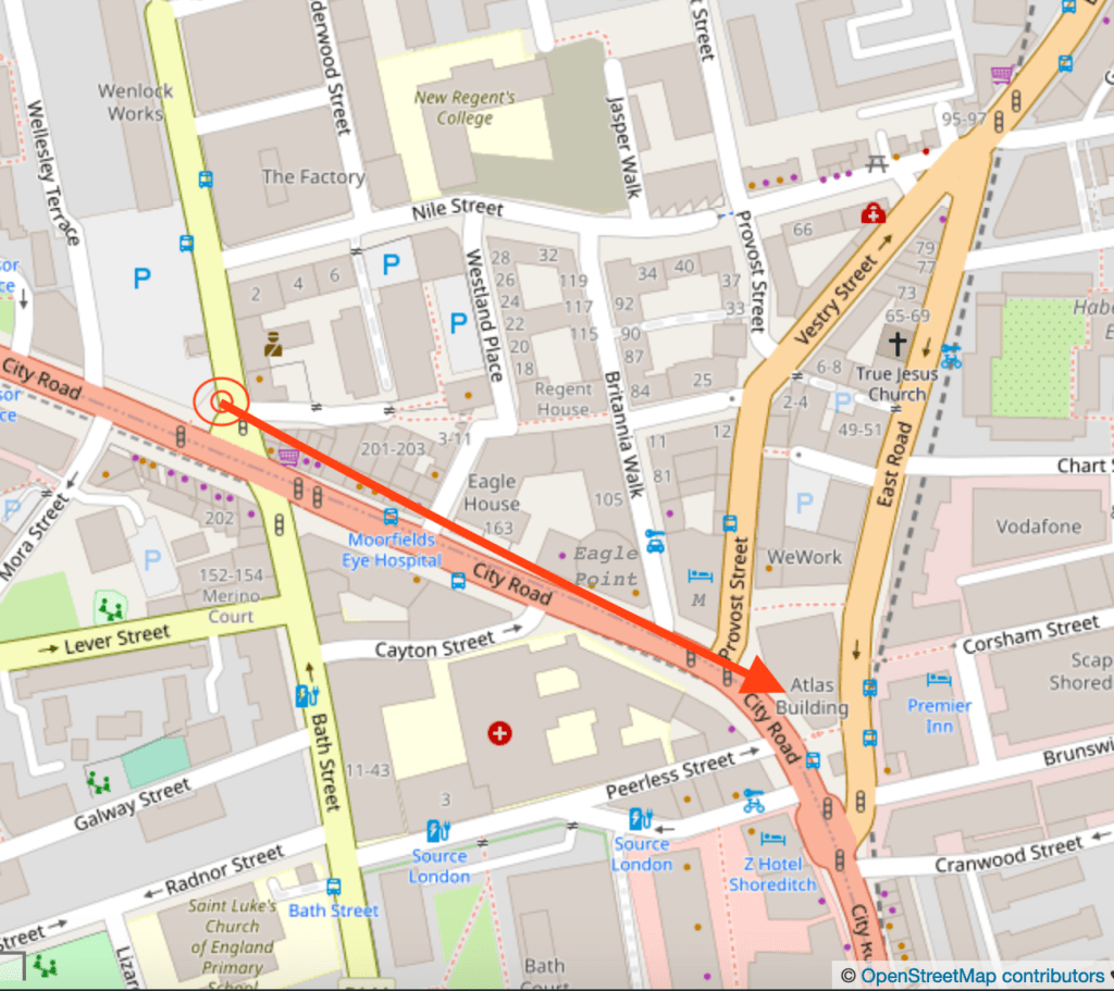 Map (C) OpenStreetMap contributors showing nearby Old St Roundabout, bottom right