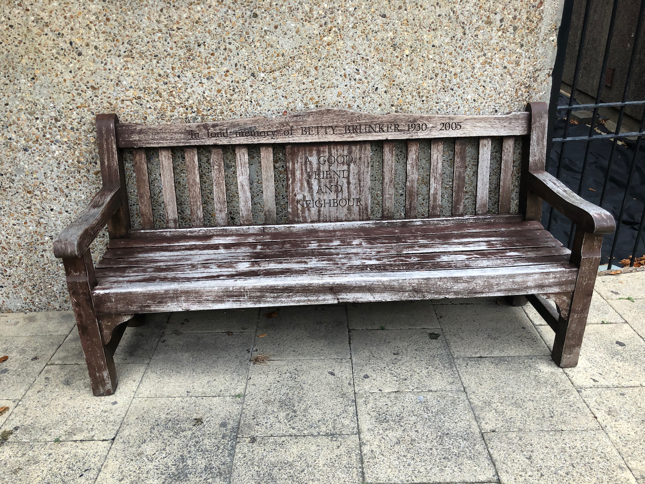 I made the sketch from a bench dedicated to the memory of Betty Brunker, “a good friend and neighbour”, 1930-2005.