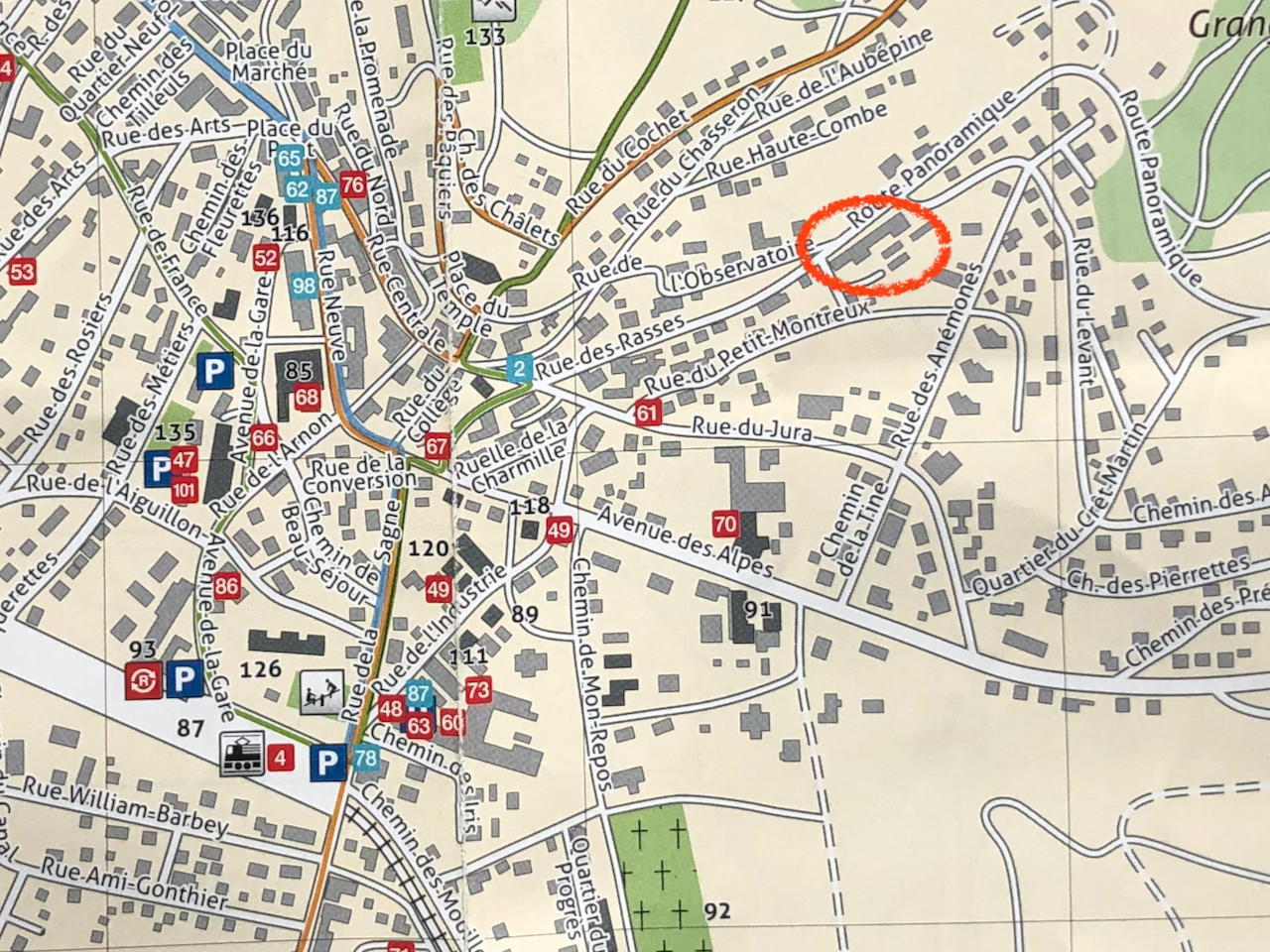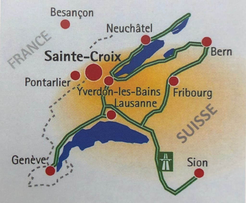 This building is on the Rue des Rasses, in Sainte-Croix, Vaud, Switzerland. For maps, see end of this article.